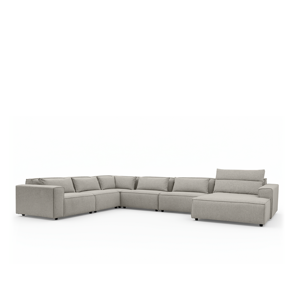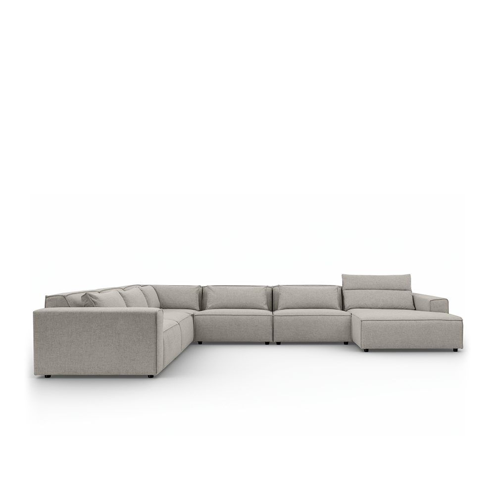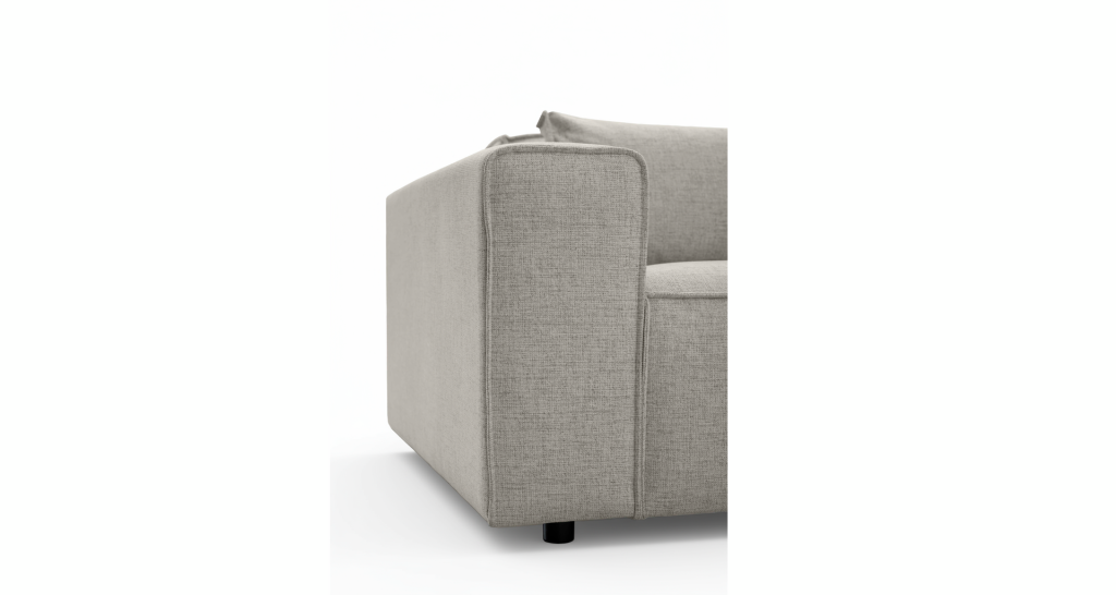 De keuze voor Soda in Ash Grey maakt Rockdale veelzijdig en tijdloos. De stof voelt prettig aan en laat zich goed combineren met warme houttinten, natuursteen of metalen accenten. De vlindernaad langs de kussens accentueert de zachte belijning en toont de aandacht voor detail. Comfort staat centraal. Lendenkussens bieden prettige ondersteuning zonder hard aan te voelen. Het dubbele rugkussen met rol op de longchair geeft extra steun wanneer je languit zit of half ligt. De lage zit en ruime zitdiepte creëren dat gewilde loungegevoel, terwijl de verfijnde pootjes zorgen voor stabiliteit en een elegante, moderne uitstraling. Rockdale voelt ongedwongen en luxe tegelijk. Een bank die je dagelijks gebruikt, maar die bij een etentje of filmavond net zo goed de sfeer bepaalt.