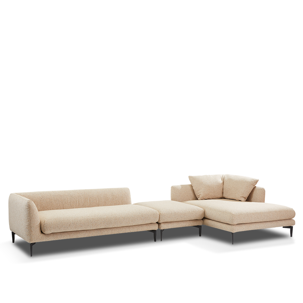 | Uitvoering | 2-zits arm links + Chaise longue + Rugkussens + Zwarte losse designpoten |