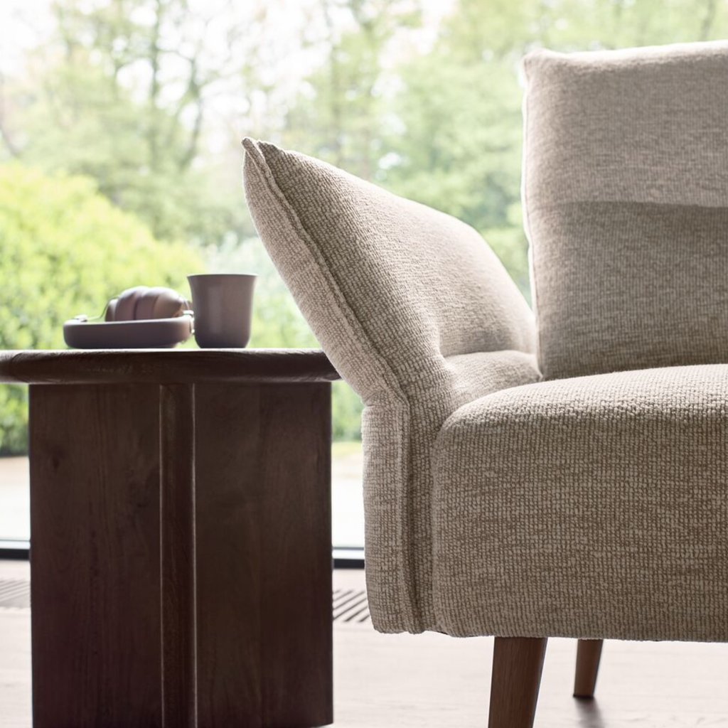 Ilanta is uitgevoerd in stof Lodge 110 linen, zacht aanvoelend en stijlvol in beige. De houten poten type W41, 20 cm hoog, geven stabiliteit en een subtiele, warme noot. Personaliseren kan volop. Kies jouw opstelling, bekleding en kleur uit een grote reeks stofkwaliteiten en tinten. Ook de poten zijn verkrijgbaar in meerdere kleuren, zodat je de bank perfect laat aansluiten op vloer, vloerkleed en salontafel. Het zitcomfort is uitnodigend en ondersteunend, met voldoende diepte voor ontspannen avonden. Combineer met de bijpassende hocker voor extra loungecomfort of als flexibel bijzetmeubel. Onderhoud is eenvoudig: regelmatig licht stofzuigen met een zachte borstel, draai kussens af en toe om en dep vlekken direct voorzichtig na.