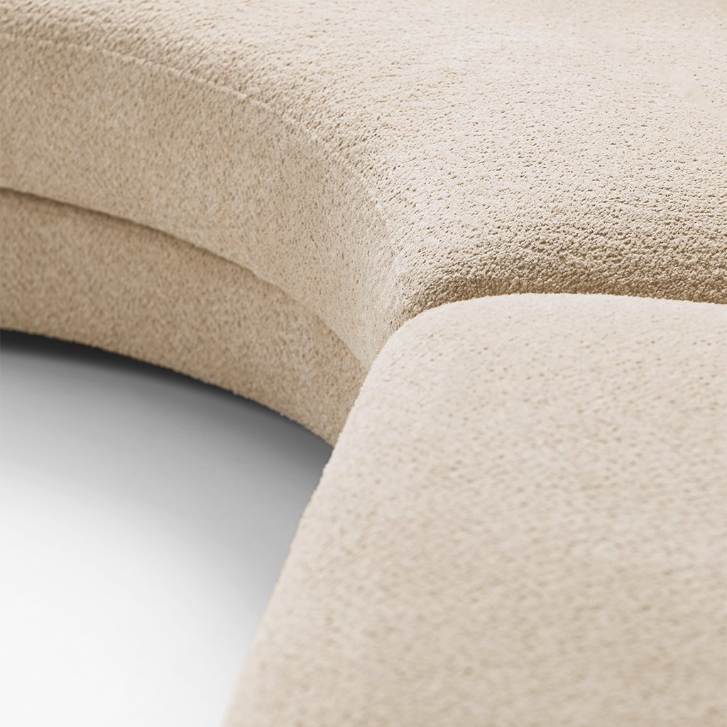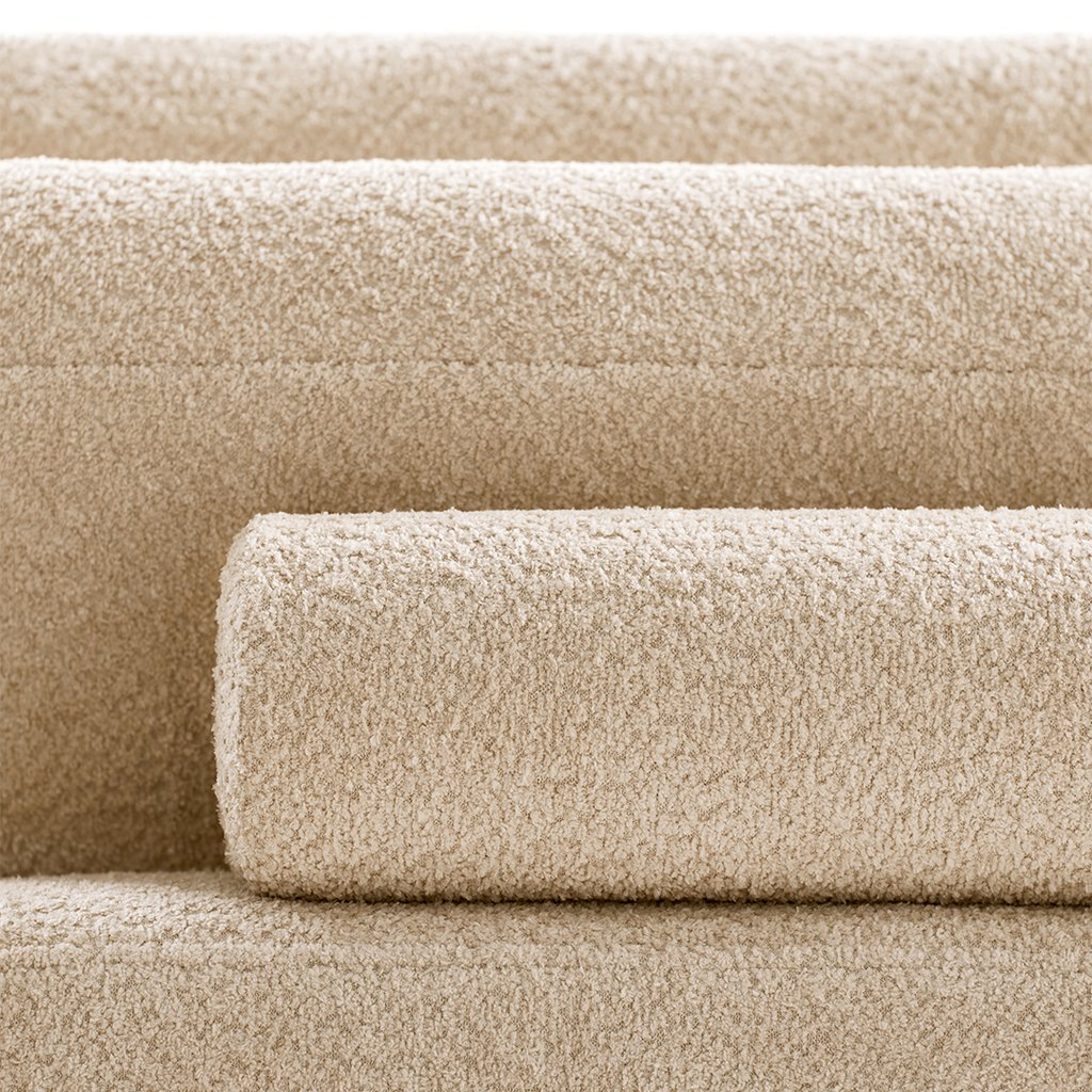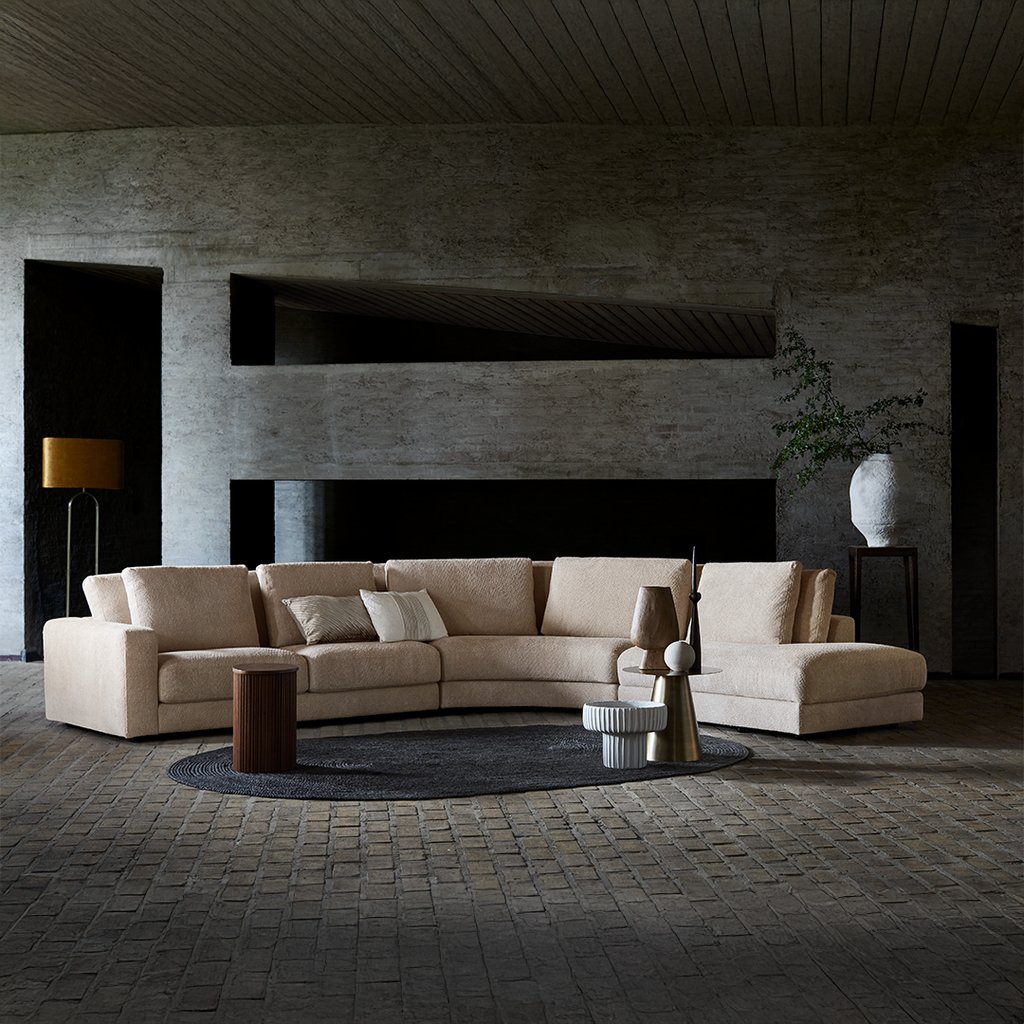 De Dutchz 112 is een bank met een stijlvolle en royale uitstraling, bekleed met een zachte, trendy bouclé stof die direct in het oog springt. Deze bank biedt niet alleen een modern design, maar ook uitzonderlijk comfort dankzij de verstelbare lendekussens waarmee u de zitdiepte eenvoudig aanpast aan uw persoonlijke voorkeur. Een bijzonder kenmerk van de Dutchz 112 is het afgeronde hoekelement, dat deze bank perfect maakt voor een vrijstaande plaatsing in uw woonkamer. Alle elementen zijn aan de zijkanten volledig gestoffeerd, waardoor de bank vanuit elke hoek een prachtig geheel vormt. Bovendien kunt u de verschillende elementen stevig met elkaar verbinden dankzij het slimme bevestigingssysteem aan de onderzijde. Met de Dutchz 112 stelt u eenvoudig uw ideale bank samen. Kies uit een uitgebreide collectie premium stoffen en elementen om een bank te creëren die naadloos aansluit op uw interieur en persoonlijke stijl. Dutchz 112 combineert esthetiek, functionaliteit en comfort op een ongeëvenaarde manier.