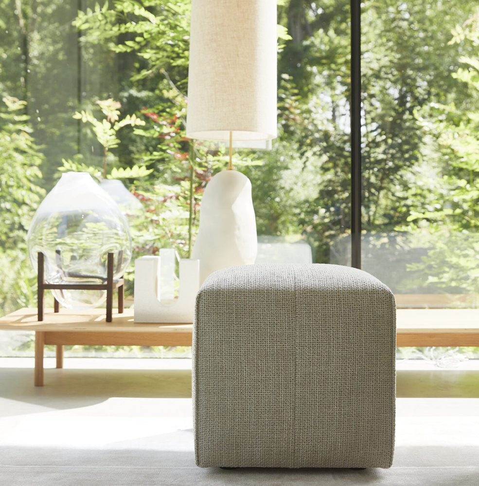 Ontwerper Tom Dissel vertelt over ‘family of form’. De poef kan namelijk los staan, maar past ook heel mooi bij de bijzondere vormgeving van de modulaire Cella bank, waarvan hij is afgeleid.