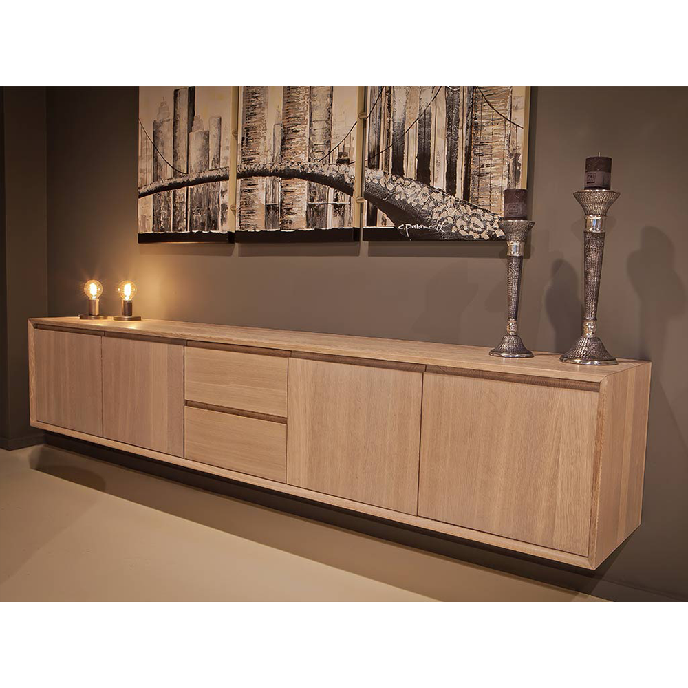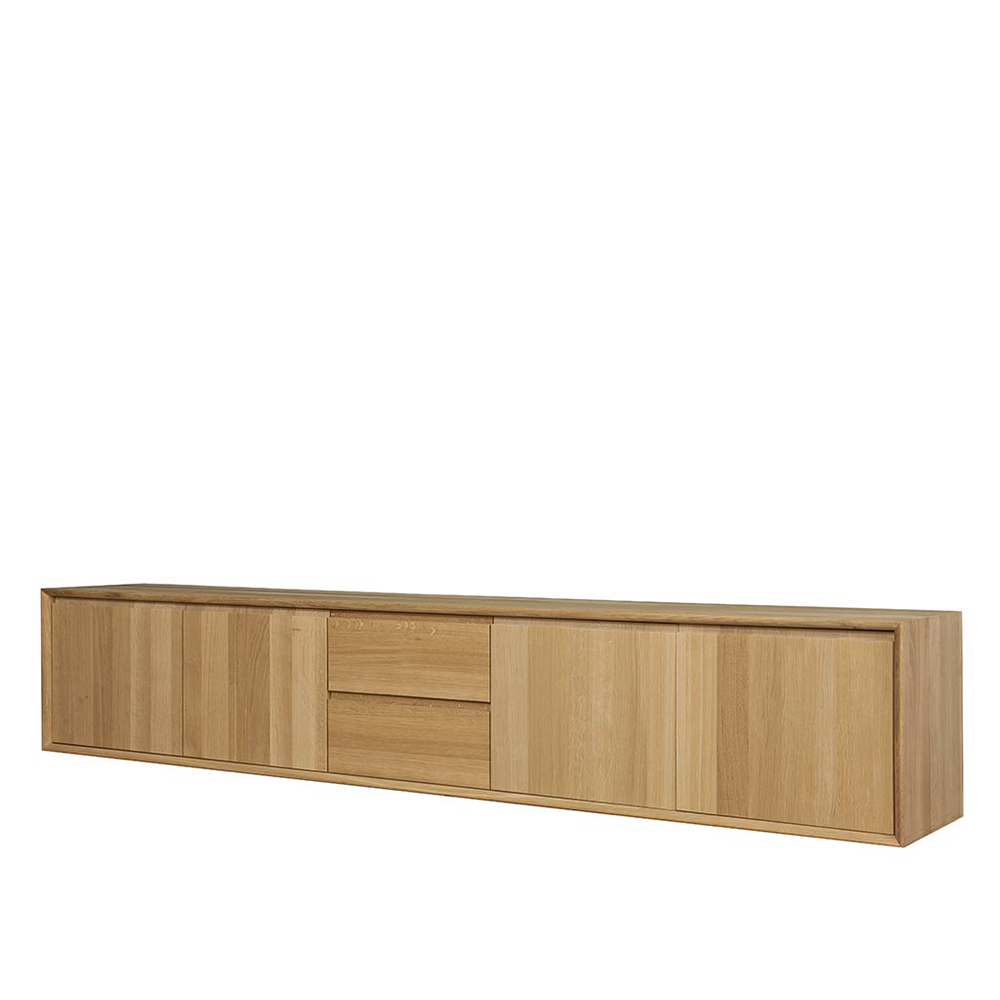 Het dressoir is gemaakt van massief geselecteerd eikenhout. Dit zorgt er namelijk voor dat het hout een rustige uitstraling heeft en tevens een beperkt aantal kleine noesten. Dus mooi van binnen en van buiten!