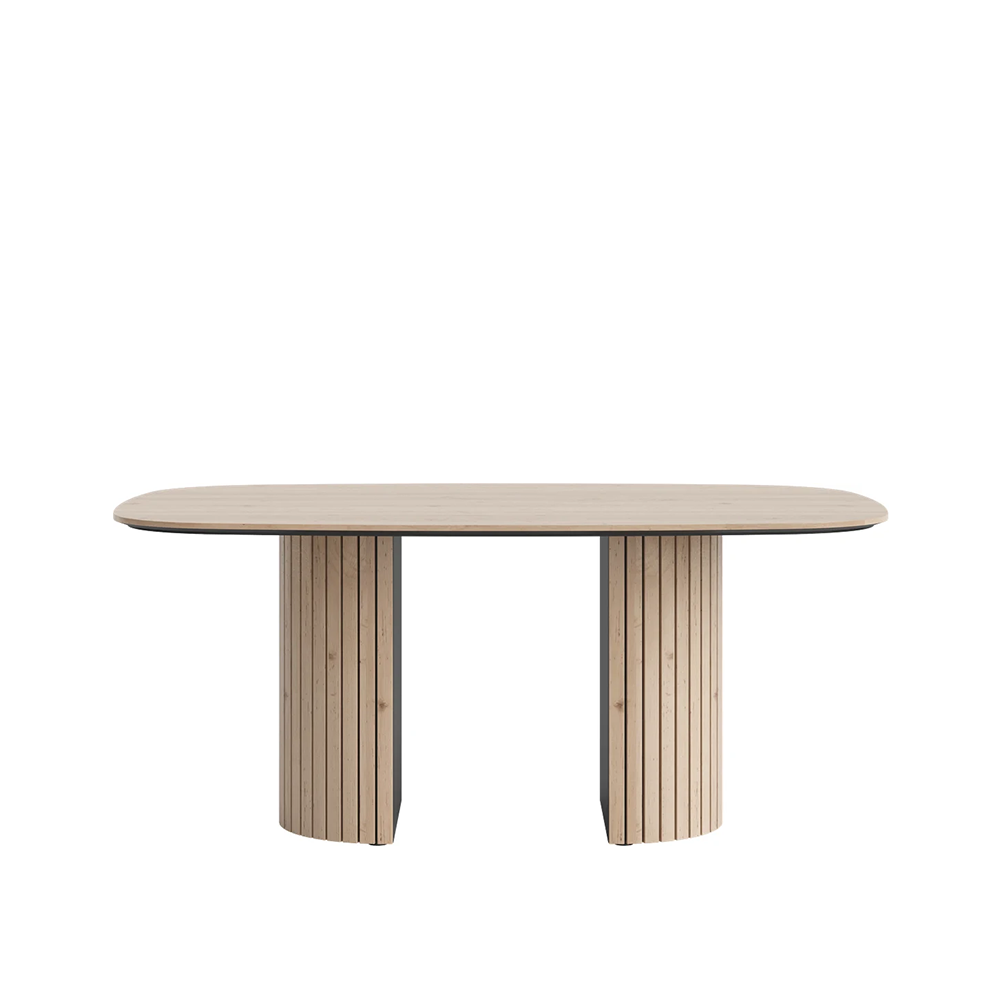 Eettafel Pavi 180cm komt uit de prachtige tafelcollectie Pavi van Henders & Hazel. Daarnaast zijn deze eettafels er in verschillende formaten zoals de meeste van onze tafelcollecties. Net zoals de meubels worden ook de tafels gekenmerkt door een lattenstructuur. Wat deze tafels uniek maakt, is de cilindervormige kolompoot. Dit is een ovale tafel die wordt gekenmerkt door een cilinderpoot in twee delen en een tafelblad van 180x120cm. De tafel is verkrijgbaar in een lichte houtkleur en in het zwart. Dit is de Natural-versie, die mooi staat in natuurlijke interieurs.