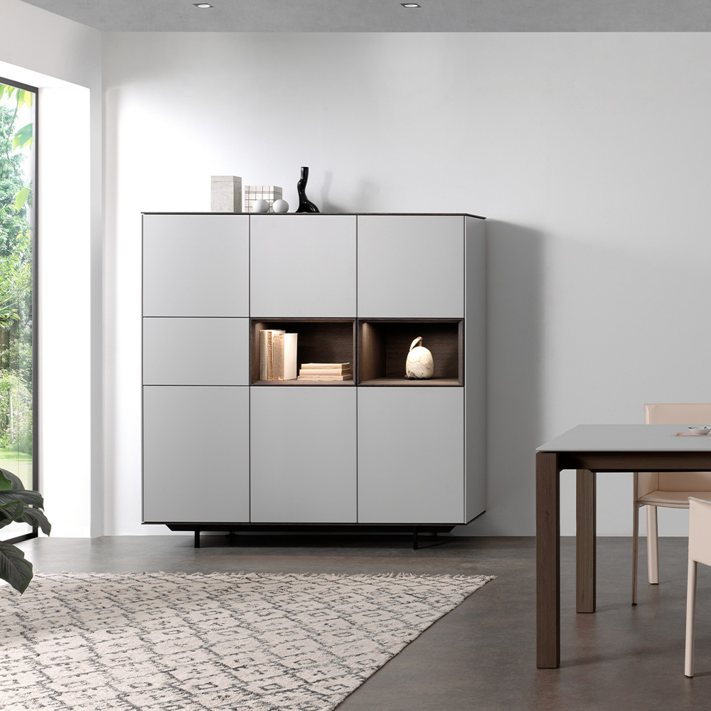 Vitrinekast Nyro is een ultra-modulair kastensysteem opgebouwd vanuit een strakke geometrie en gebaseerd op een ragfijne afwerking en slimme details. Daarnaast biedt de heldere vormgeving iedereen de mogelijkheid om aan de hand van diverse modules en inspirerende materialen een authentiek meubel samen te stellen.