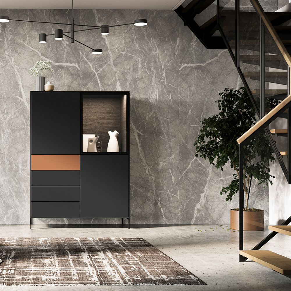 De fijne belijning en het subtiele kader maken van deze collectie een authentieke meubellijn. In het atelier van Saunaco gaan ze voor je aan de slag om een meubel te creëeren dat écht bij jou past. Je kunt kiezen tussen verschillende kleuren zoals stijlvol ‘white’, ‘basalt’ of modern ‘black’ in een duurzame poederlak, maar ook de materiaalkeuze ligt in jouw handen. De troef van het programma Nyro ligt namelijk bij het subtiele modulaire karakter. Je kan jouw meubel helemaal naar wens zelf samenstellen. Dit houdt in dat je zowel de modules in verschillende afmetingen als verschillende kleuren kunt combineren.