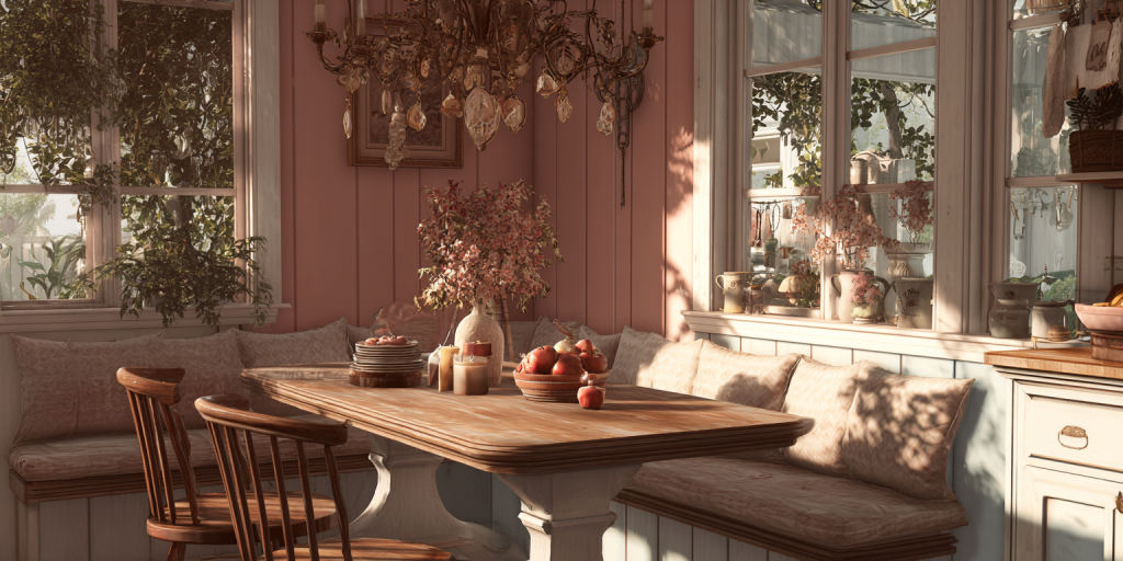 “Een absoluut hart van de cottagecore woonstijl is de eethoek. Niets straalt zoveel huiselijkheid uit als een eetkamerbank vol zachte kussens; het nodigt direct uit om urenlang te tafelen. Maak het plaatje compleet met een simpel linnen tafelkleed, een paar kaarsen en een bos versgeplukte bloemen. Zo creëer je met een mix van comfort en natuurlijke materialen een plek waar iedereen zich direct thuis voelt.”