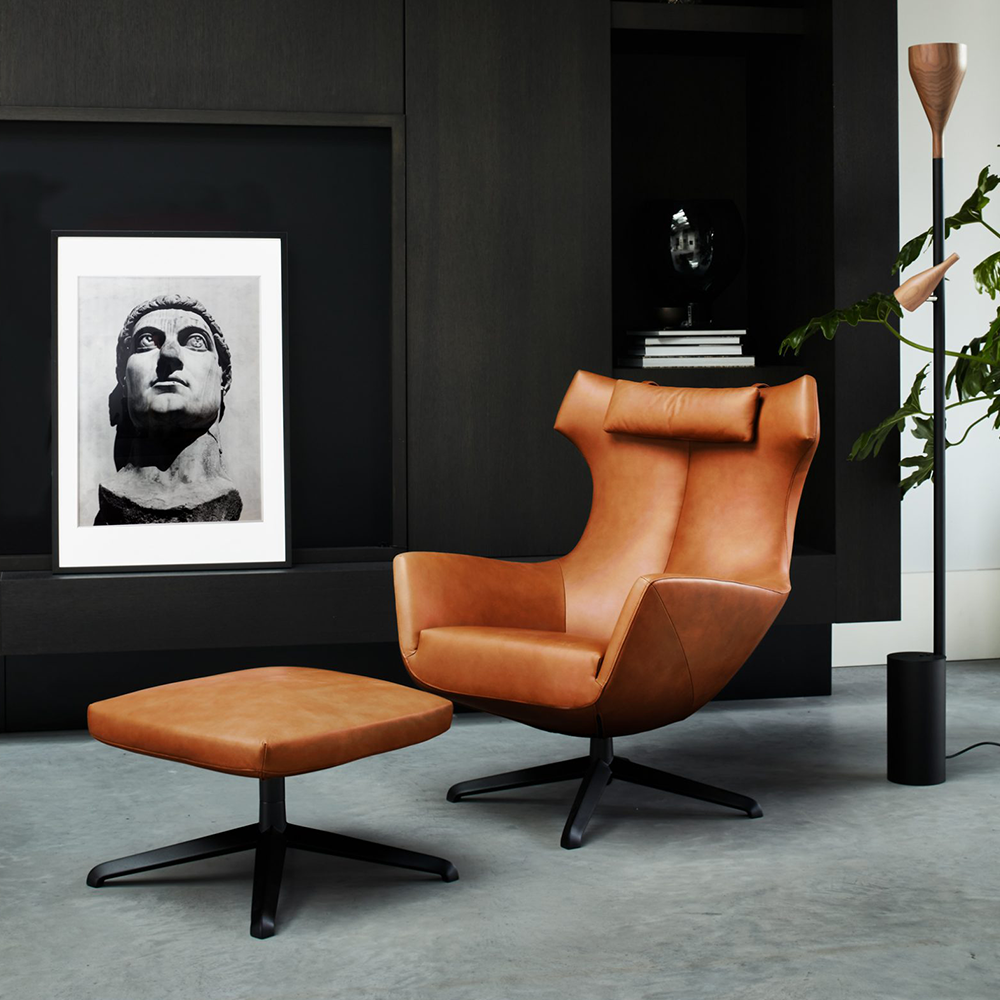 Fauteuil Nosto combineert comfort met looks. In het ontwerp hebben we veel aandacht besteed aan de geometrische patronen, die gevormd worden door de stiknaden. In veel opzichten is Nosto een unieke draaifauteuil in de collectie van Design on Stock: het is de enige fauteuil die met kantelmechanisme verkrijgbaar is. Het kantelmechanisme en de bijbehorende poef zorgen voor ongekend comfort; het (optionele) hoofdkussen zet de puntjes op de i.