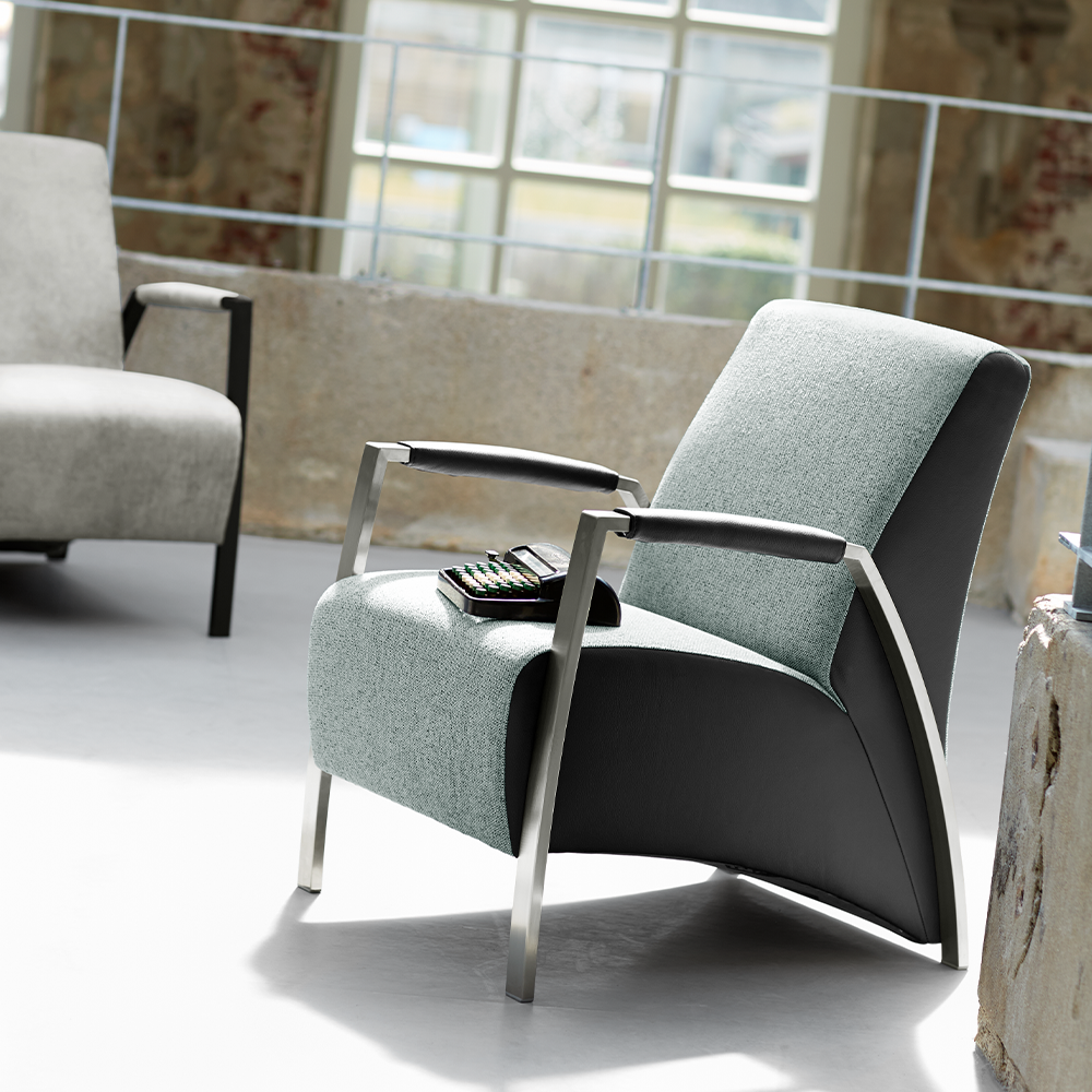 Fauteuil Grandola daar kun je alle kanten mee op. Zo heb je een uitgebreide keuze uit leder of stof, of juist een leuke combinatie van stof met leder aan de zijkant van de fauteuil. Bovendien bepaal je zelf hoe leuk de kleurcombinatie wordt; een leuke frisse kleurcombinatie of liever wat meer de kleuren op elkaar afgestemd? Het kan allemaal bij model Grandola.