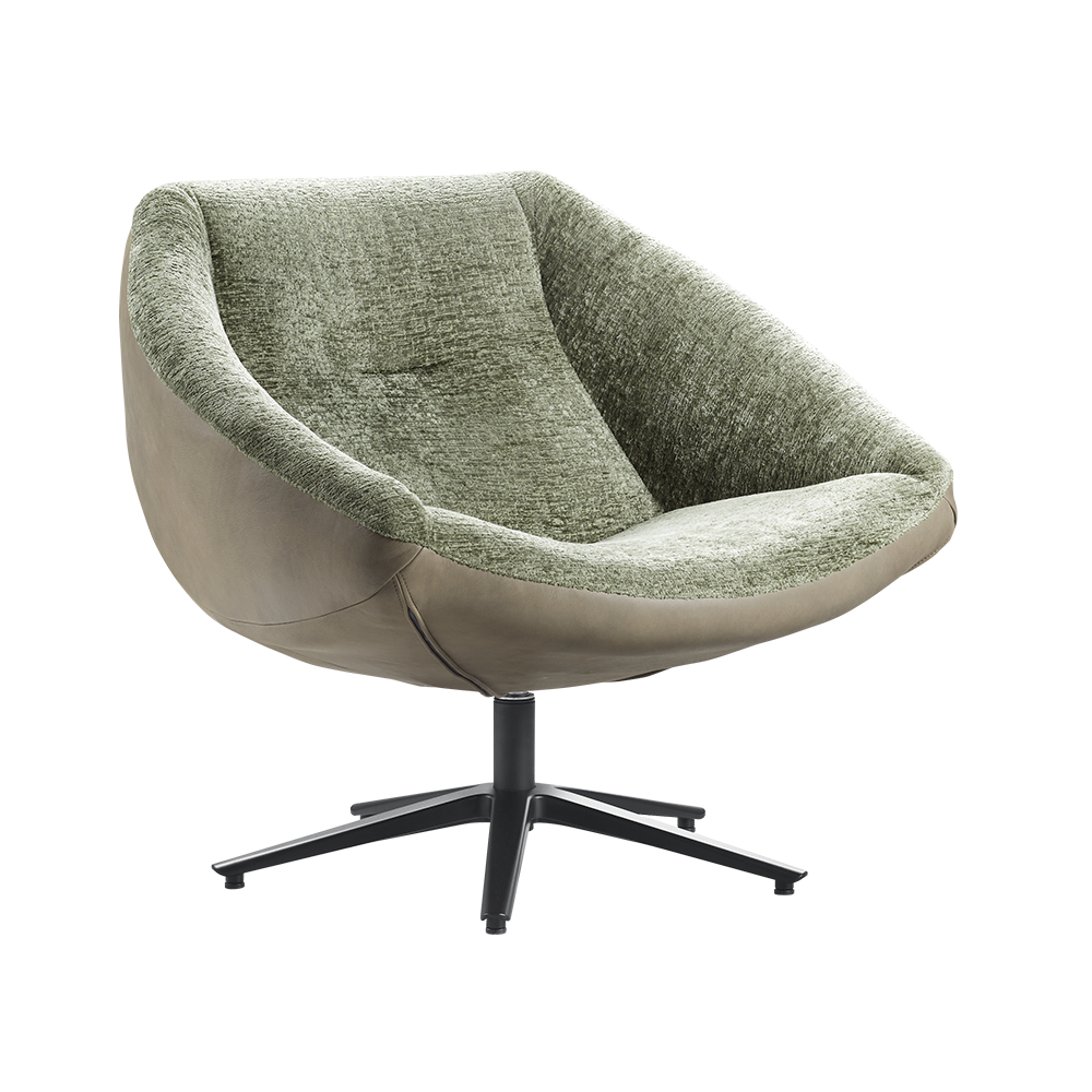 De Rondo fauteuil leent zich perfect om te combineren met een (hoek) bank en is door zijn opvallende ronde vorm een echte eyecatcher in je zithoek. De zwarte draaipoot is verkrijgbaar in twee uitvoeringen: een vierteens draaipoot of een vijfteens draaipoot. Ook de rughoogte kun je in twee uitvoeringen kiezen: een hoge rug of een lage rug. Bovendien is er een ruime keuze in stof en leder. Zo kan je ook bij deze fauteuil kiezen uit alle stoffen en leder uit de INHOUSE collectie, of zelfs een combinatie van stof en leder.