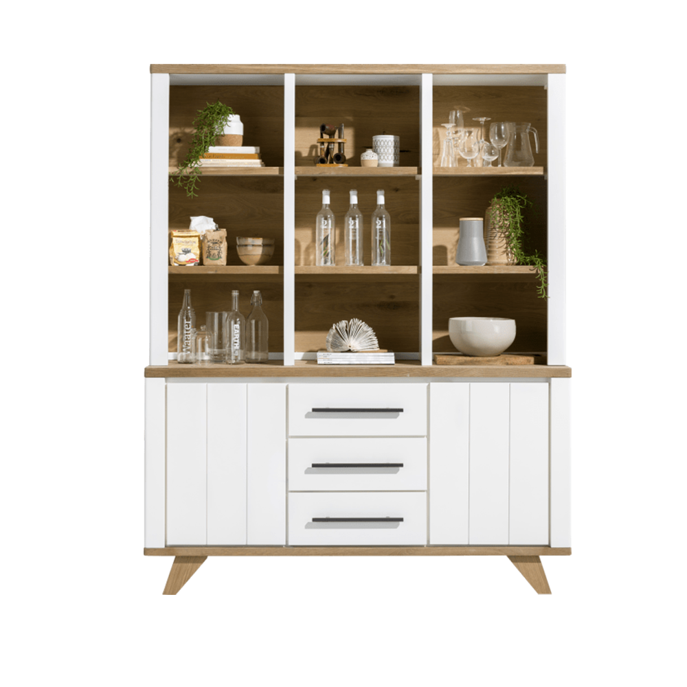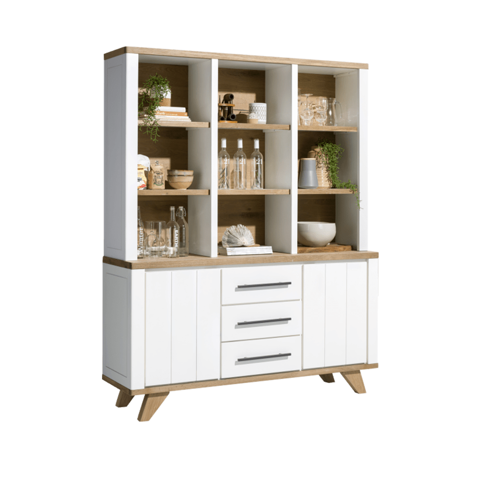 Buffetkast Jardin blijft een echte blikvanger! Hout met grijs of wit, het blijft een gouden combinatie. Met deze woonstijl kun je dus werkelijk alle kanten op. Voeg daarbij bijvoorbeeld een aantal trendy woonaccessoires toe voor de finishing touch. Kortom: Met deze serie kun je dus alle kanten op!