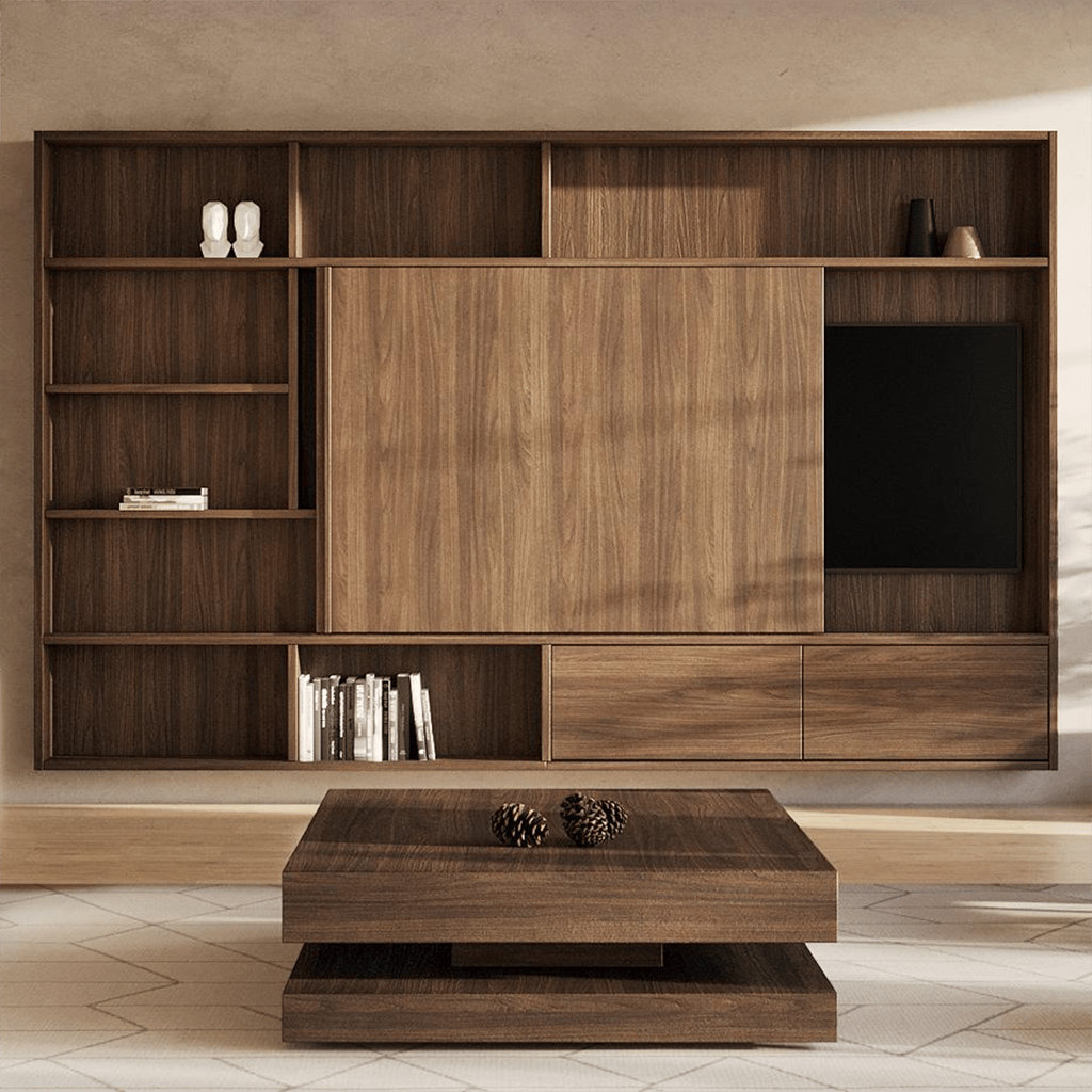 Cinewall Flatslide is meer dan alleen een tv-meubel. Dit maatwerk cinewall systeem biedt tal van voordelen, zoals een strakke afwerking, verborgen bekabeling en de mogelijkheid om extra opbergruimte te creëren. Je kunt de tv aan de linker- of rechterzijde plaatsen en kiezen uit diverse luxe afwerkingen in hout- en steeneffecten. Dankzij de slanke diepte van slechts 27 cm past het meubel perfect in zowel grote als kleinere woonkamers.