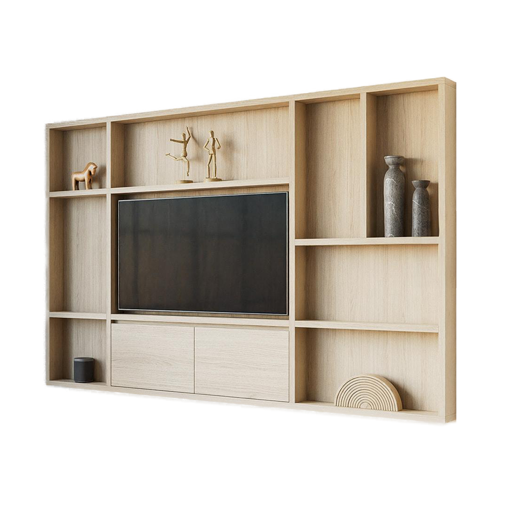 Wij begrijpen dat elke televisie uniek is, en daarom biedt de Tripoli cinewall de flexibiliteit om de nismaat van de tv aan te passen aan jouw specifieke wensen en de afmetingen van je tv. Zo kan je kiezen tussen een diepte van 18 cm of van 25 cm. Onder de tv bevinden zich twee handige kleppen, perfect voor het opbergen van kleine benodigdheden. De overgebleven ruimte in de kast kun je naar eigen inzicht inrichten met kunstwerken, pockets of decoratieve items.