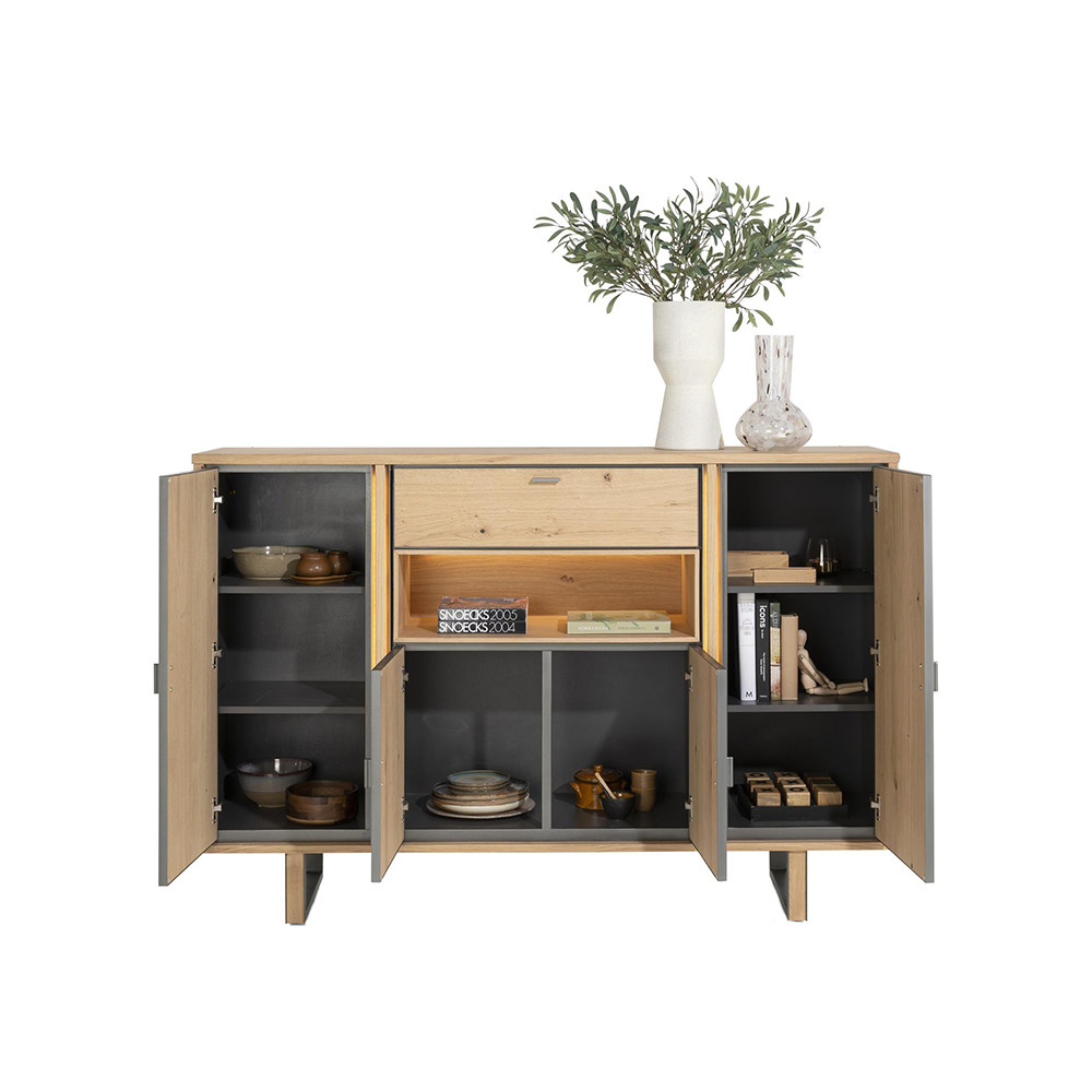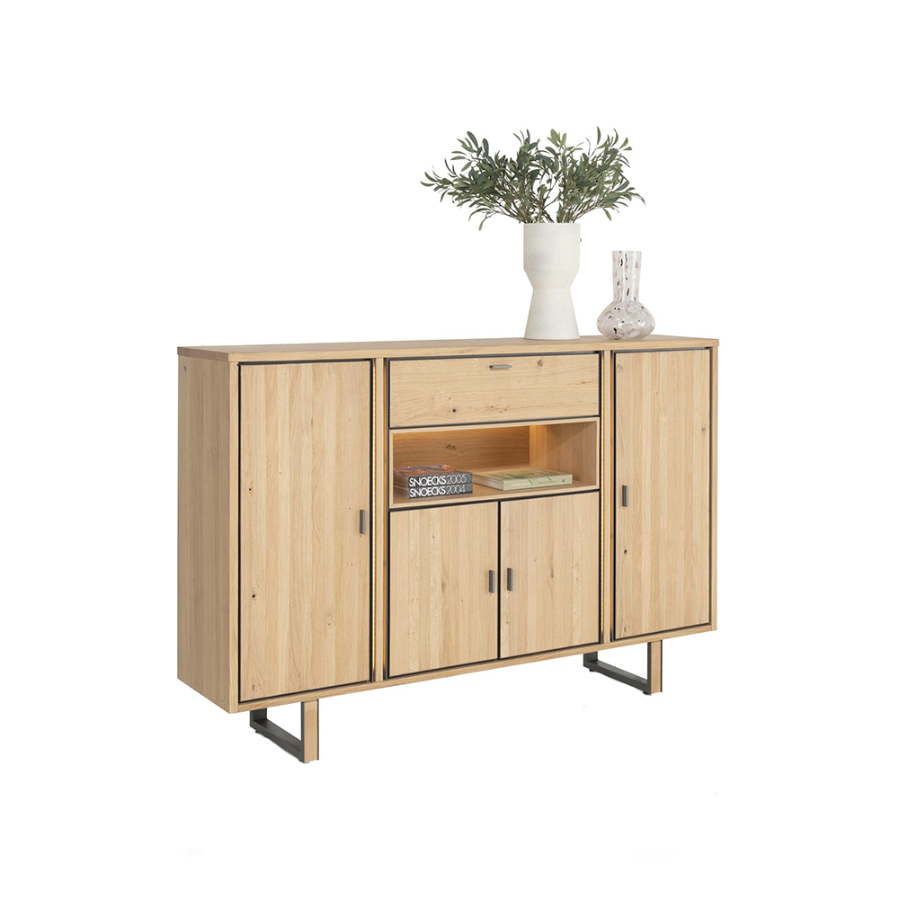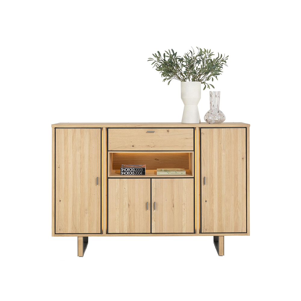 Dressette Shimanto is een prachtige toevoeging aan elk huis. De keuze voor eiken fineer als materiaal voor de kast zorgt voor een mooie natuurlijke uitstraling. Hou jij ervan om jouw interieur helemaal op elkaar af te stemmen? Dan is Shimanto perfect voor jou! Dit is namelijk een woonprogramma van Henders & Hazel, waardoor je bijvoorbeeld jouw eettafel kan matchen met het dressoir. De Bright oak natural kleur van dressette Shimanto draagt bij aan de warmte en tijdloze uitstraling, waardoor Shimanto een centraal punt wordt in de ruimte.