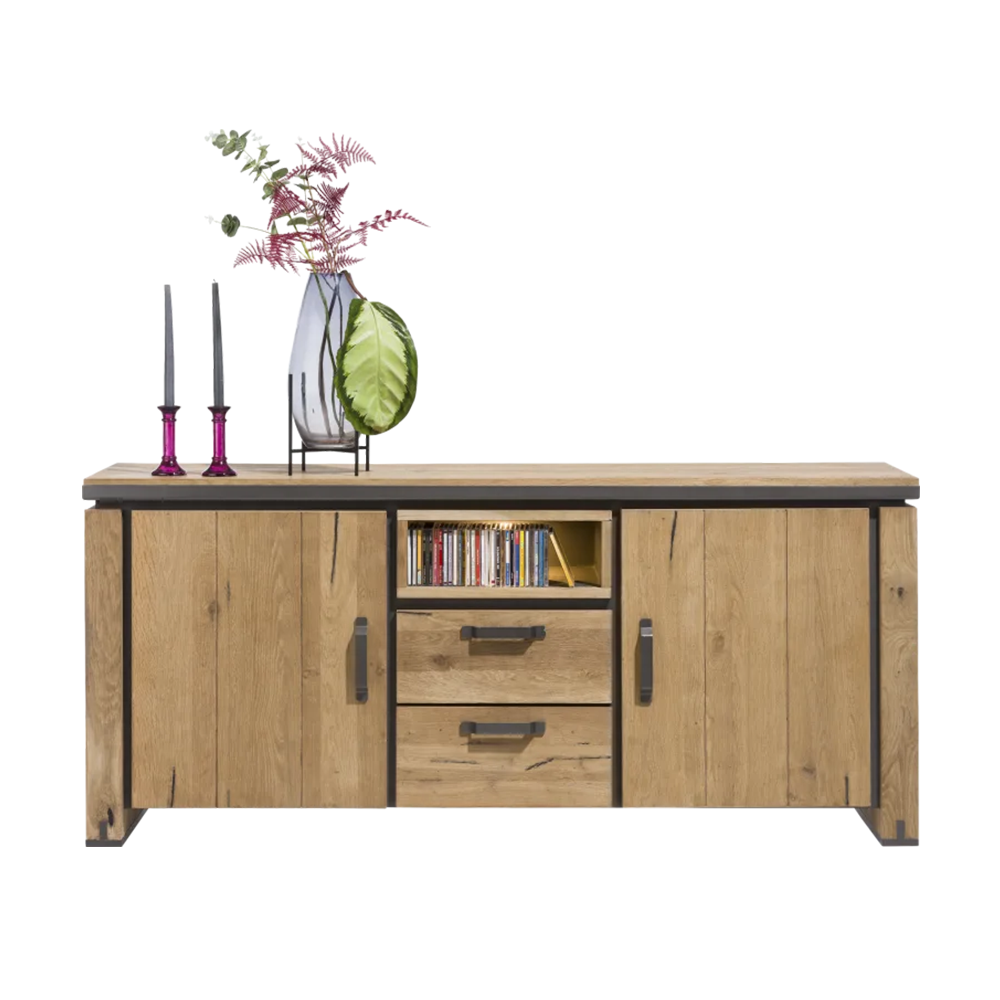 Dressoir Farmland blijft een echte blikvanger! Hout en metaal, het blijft een gouden combinatie. Laat jouw mooiste item zien en wat je niet in het zicht wilt, berg je gewoon op! Ten slotte zorgt deze mix er voor dat deze robuuste look perfect in een industriële woonkamer past. Maar ook in het landelijke interieur komt deze Henders & Hazel kast goed tot zijn recht. Daarnaast zijn de laden en deuren voorzien van een soft-closing systeem. Bij de lowboards zorgt zelfs een kabelopbergsysteem er ook nog eens voor dat de kabels praktisch weggewerkt worden. Hoe handig is dat!