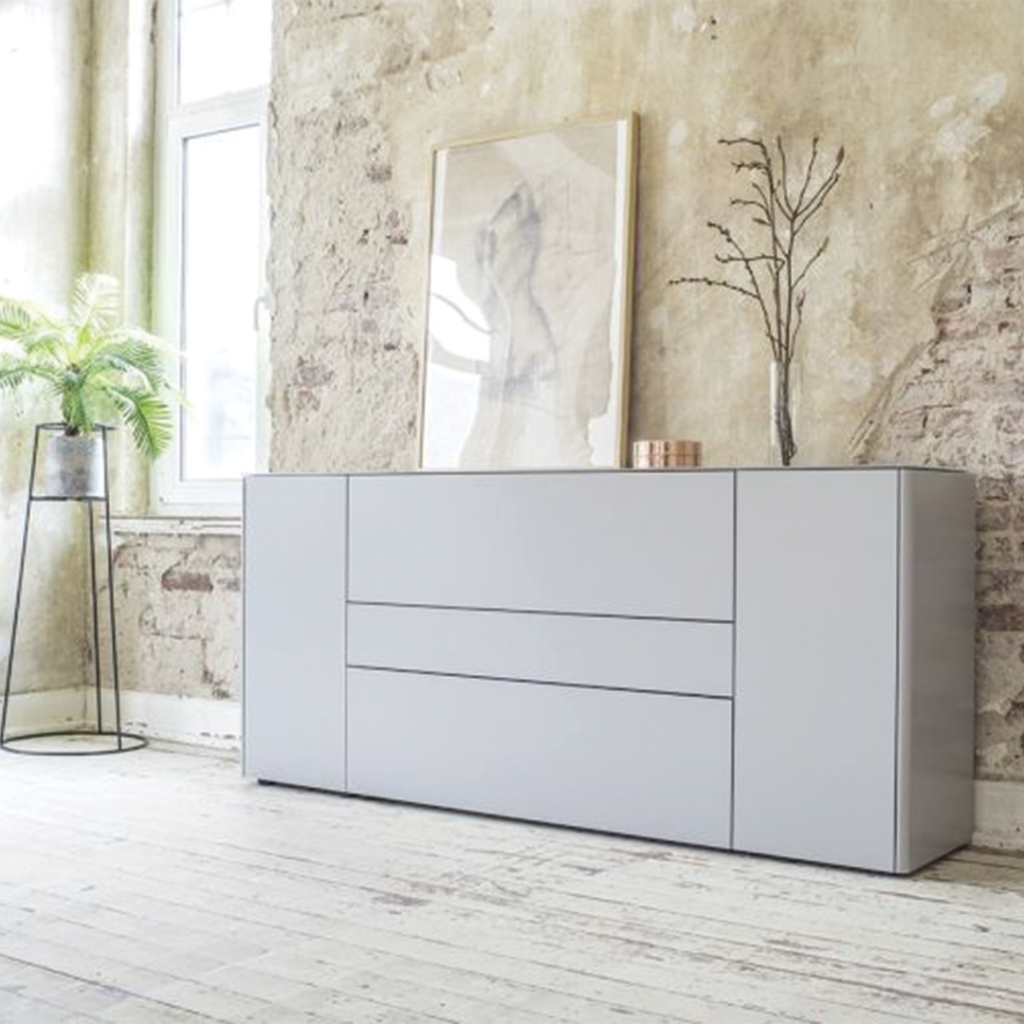 De afgebeelde versie toont het GOYA 9 dressoir in een elegante lichtgrijze afwerking – een tijdloze keuze die in vrijwel elk interieur past. Maar de mogelijkheden zijn veel groter. Kies voor klassiek wit, gedurfd zwart, warme houtfinishes of juist moderne betonlook. Werk met hoogglans voor een luxe uitstraling of kies mat gelakt voor een subtielere look.
