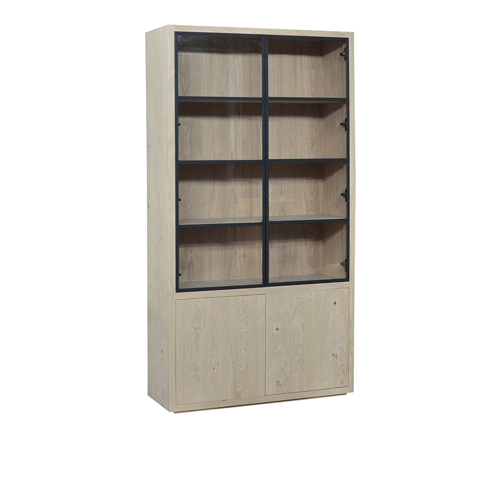 Glaskast Puur is een moderne vakkenkast. Door de vele opties past deze kast in veel woonstijlen. Het prachtige eiken is hier gecombineerd met stoer metaal. Daarnaast zorgen de vele vakken en de 2 deuren voor veel opbergruimte. De deuren zorgen voor een rustige, opgeruimde sfeer, terwijl de vele vakken perfect zijn om al jouw accessoires, servies of boeken in uit te lichten.