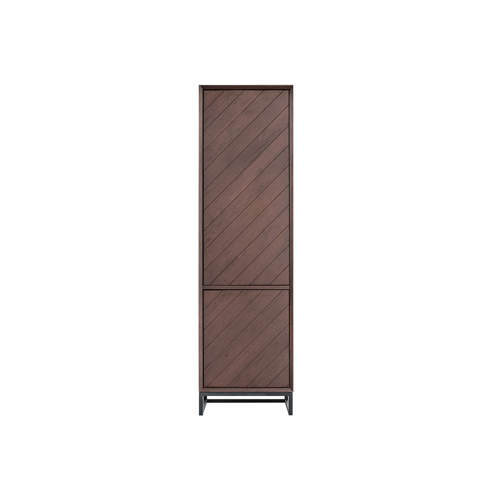 Het Baltara woonprogramma is vervaardigd uit eikenhout en valt op door zijn stijlvolle details. De deuren, voorzien van een softclose-mechanisme, hebben een elegant visgraatpatroon en afgeschuinde randen. Opbergkast Baltara Links heeft twee deuren en is uitgevoerd in de kleur ‘coffee’. Zoals de naam al doet vermoeden, draaien de deuren naar links, maar de kast is ook beschikbaar met rechtsdraaiende deuren. Dankzij het softclosing-systeem vallen de deuren zachtjes dicht en blijft het strakke uiterlijk behouden door het push-to-open systeem. Het metalen framepoot geeft de kast een modern industriële touch. Is de kleur coffee net niet helemaal jouw smaak? Opbergkast Baltara Links is ook in andere kleuren (lak of olie) beschikbaar tegen meerprijs, zoals (mat) zwart, grijs en slate. Vraag naar de mogelijkheden in de winkel.