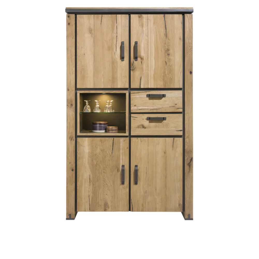 Opbergkast Farmland is een robuuste houten kast uit de Farmland-collectie van Henders en Hazel. Daarnaast biedt dit model enorm veel bergruimte. De opbergkast met een stoer eigentijds design is gemaakt van eikenhout en eikenfineer en afgewerkt in de kleur Railway Brown. Deze Henders en Hazel kast heeft 4 deuren, 2 laden en 2 niches waarin ledverlichting is verwerkt, hierdoor heeft hij een warme uitstraling. Tevens geven de metalen accenten de opbergkast een subtiel industrieel tintje, maar hij behoudt wel een overwegend landelijk karakter.