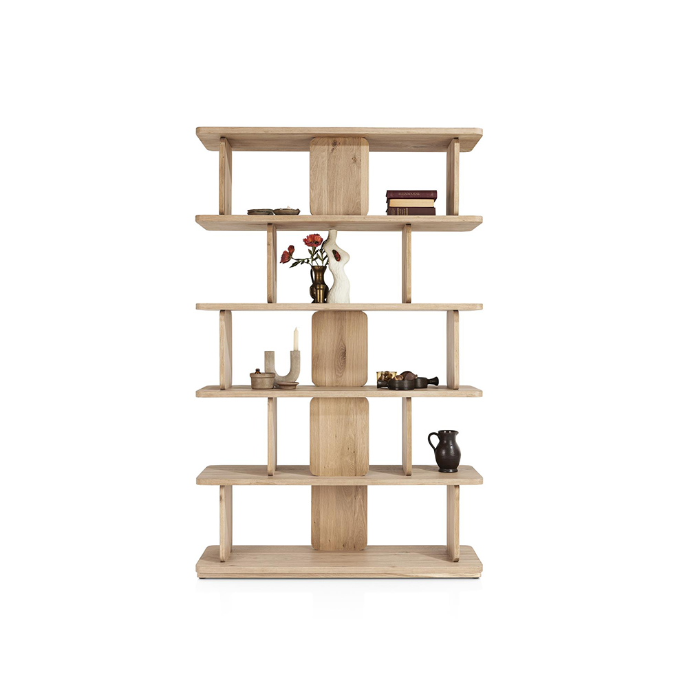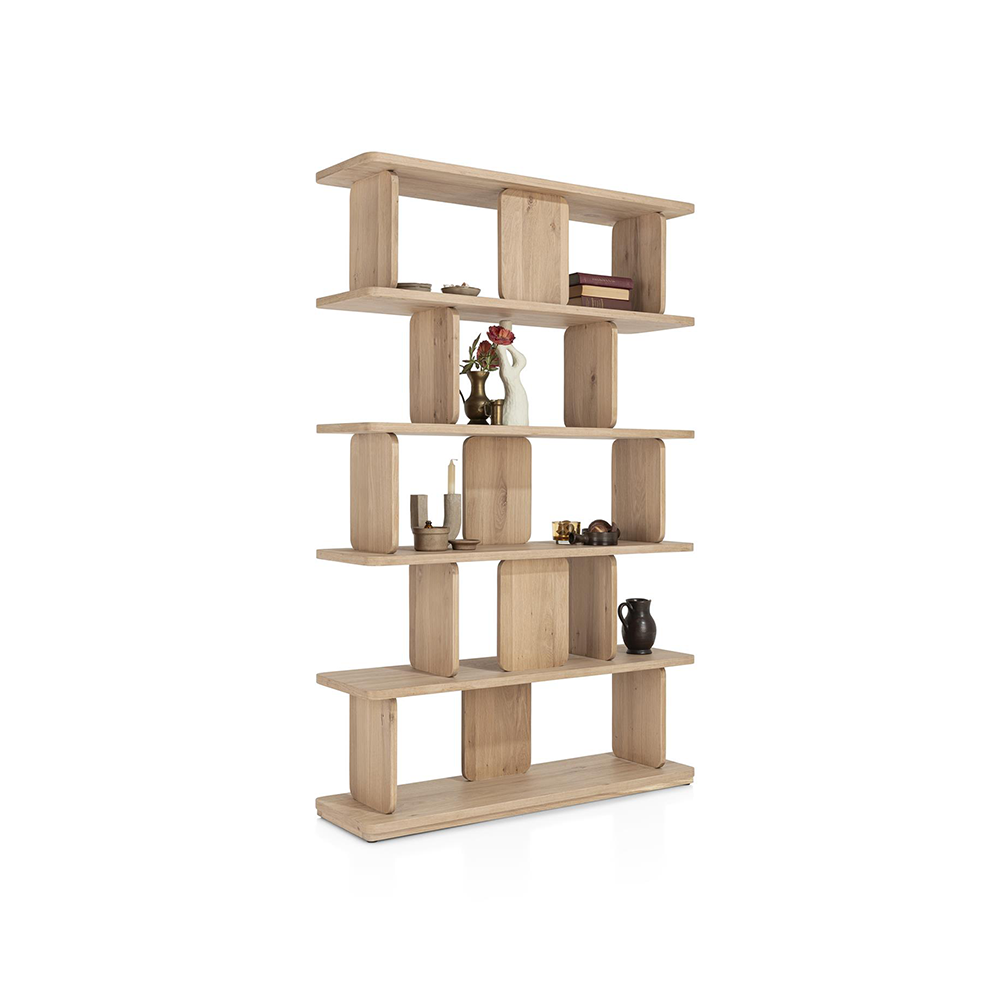 Doordat de meubels van het woonprogramma Azulo/Azulaar een lichte eikenkleur hebben, creëer je een gezellige, rustige sfeer in jouw huis. Door de neutrale kleur van de roomdivider kan je hem goed met jouw andere meubels combineren.