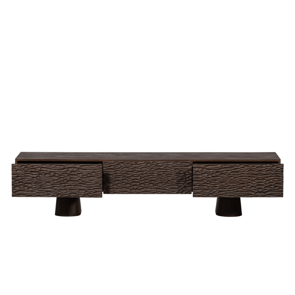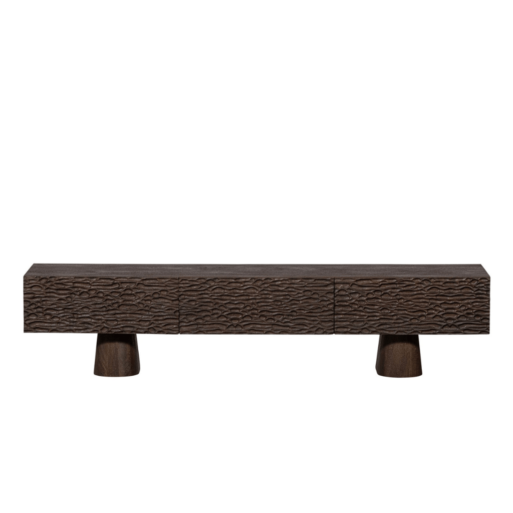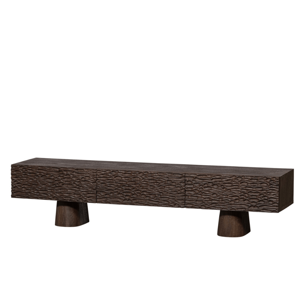 Wil je een vleugje speelsheid en warmte in huis halen? Dan zit je met tv-meubel Crumble goed! Dit tv-meubel is gemaakt van mangohout en is afgewerkt in de kleur walnoot. Mangohout wordt gekenmerkt door duidelijk zichtbare nerven en kleurnuances. Daardoor heeft dit meubel een warme en natuurlijke uitstraling, waardoor dit tv-meubel in veel woonstijlen past! De grove structuur en de brede poten geven het meubel een speelse look.