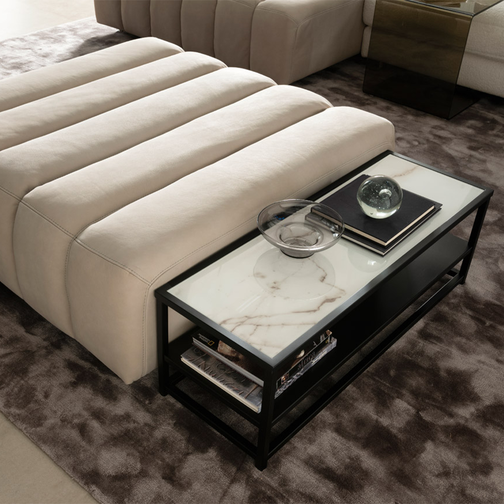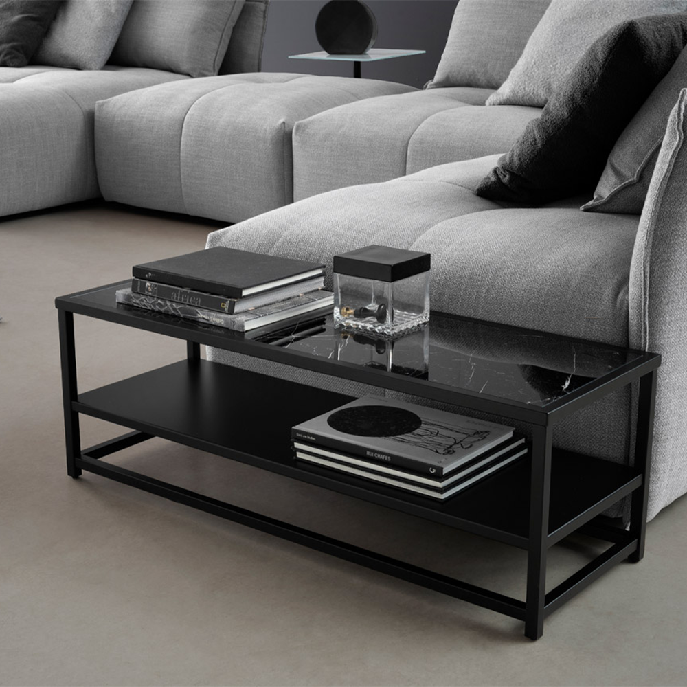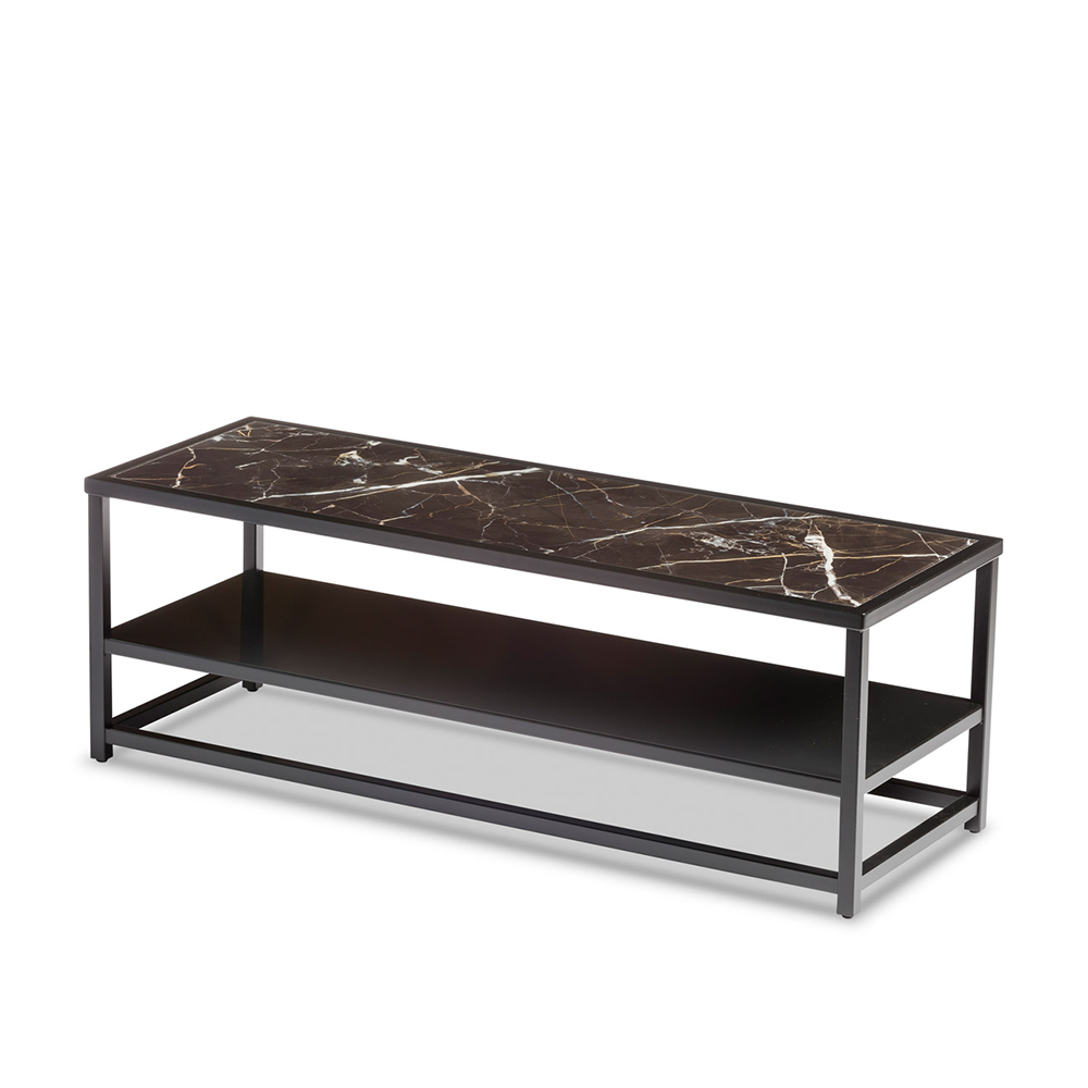 Wat het lowboard designwerk echt opvallend maakt, is het strakke zwart metalen frame dat het ontwerp versterkt. Het frame voegt niet alleen een moderne uitstraling toe, maar zorgt ook voor duurzaamheid en stabiliteit. Bovendien kun je kiezen uit verschillende kleuropties voor het glazen blad. Heb je een voorkeur voor een zwarte marmeren look of juist een keramische blad? Dit meubel heeft de optie die perfect past bij jouw interieur en persoonlijke stijl.