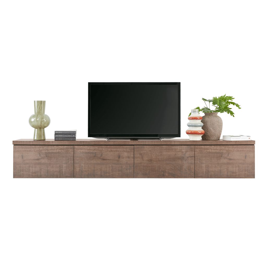 Met zijn royale afmetingen en luxe uitstraling biedt tv-meubel Lorina Large niet alleen voldoende opbergruimte voor al je entertainmentapparatuur, maar ook een indrukwekkend designelement voor je interieur. Dankzij de hoogwaardige Dark Mango Lamulux afwerking heeft Lorina Large de warme, natuurlijke uitstraling van massief hout, terwijl het uitzonderlijk kras-, stoot- en slijtvast is. Dit maakt het meubel niet alleen prachtig om te zien, maar ook uiterst praktisch en duurzaam voor dagelijks gebruik. Het hangende tv-meubel Lorina Large is ontworpen met vier ruime kleppen die je eenvoudig opent met het subtiele push-to-open systeem. Geen handgrepen of knoppen verstoren de strakke lijnen van dit meubel, wat zorgt voor een minimalistische en moderne look.