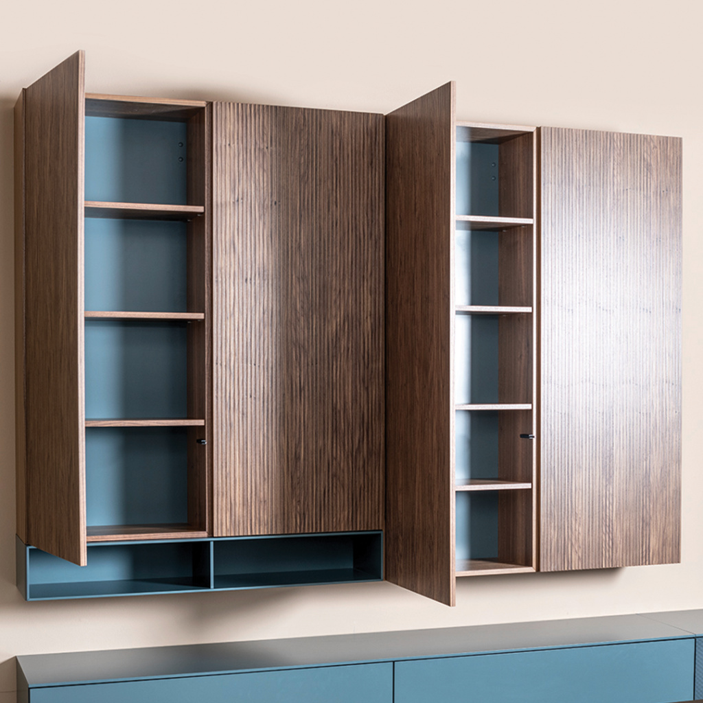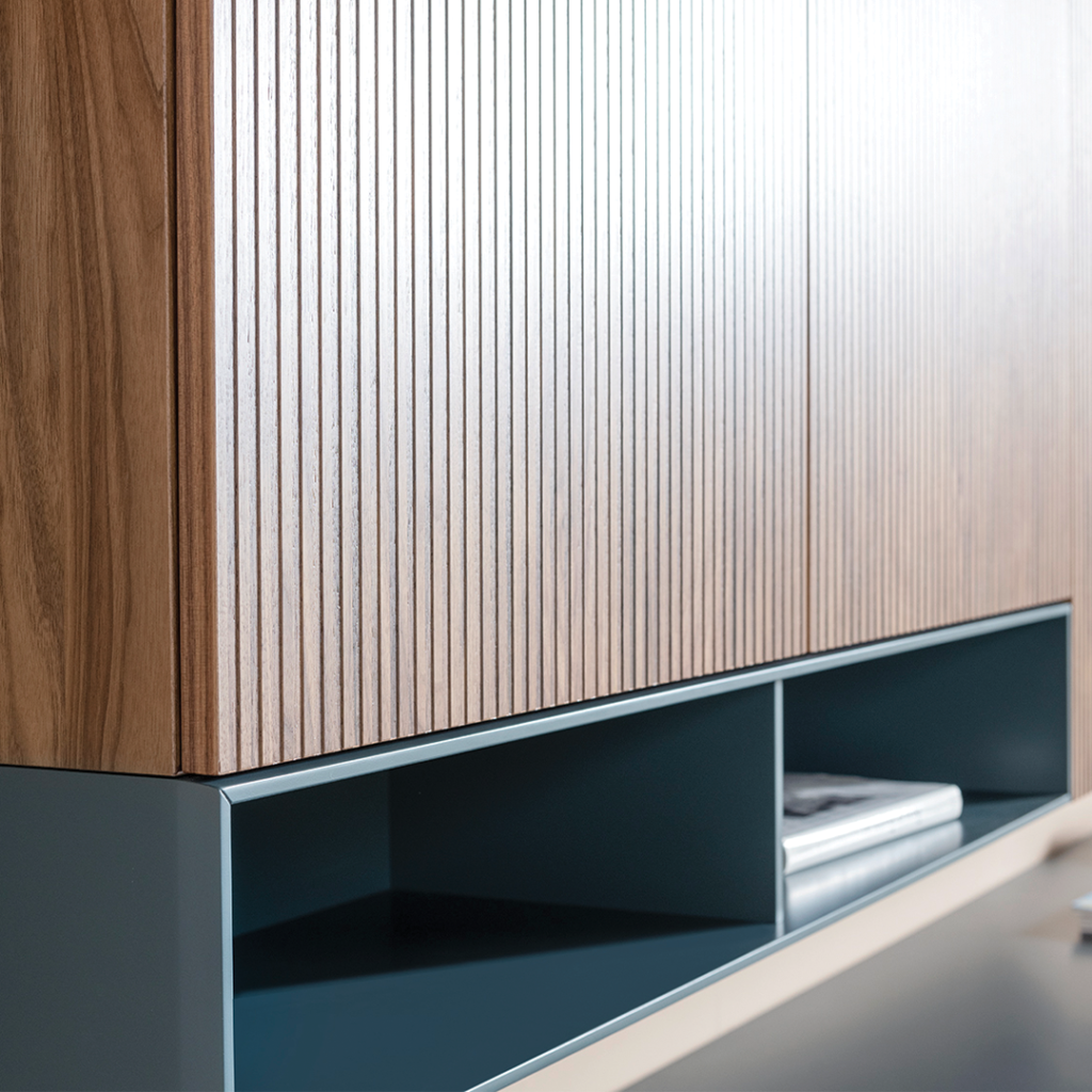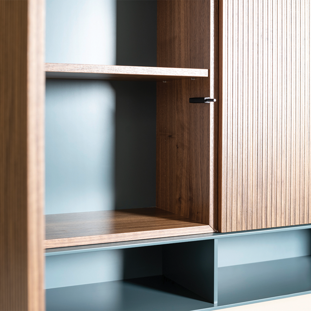 Wat de Cubo 168 echt bijzonder maakt, is de vrijheid die het biedt. Kies uit een uitgebreide selectie materialen, kleuren en afwerkingen om een meubel te creëren dat perfect aansluit bij jouw interieur. Van warm hout tot strak gelakt, van subtiele tinten tot gedurfde kleuren – alles is mogelijk.