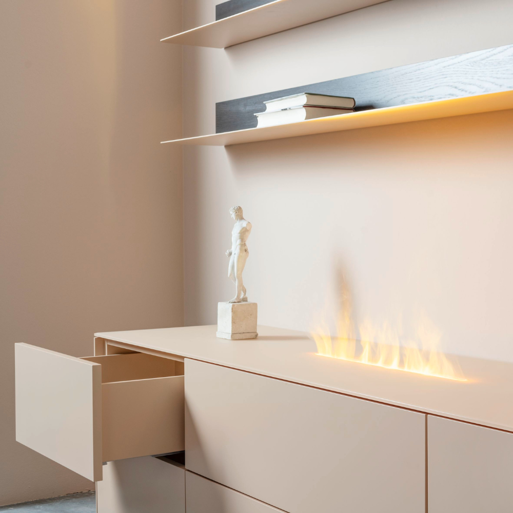 De Goya 11 blinkt uit in modulariteit en flexibiliteit. Kies uit verschillende hoogtes, breedtes en uitvoeringen, zoals deuren, lades, klapdeuren en open vakken. Dankzij de hoogwaardige afwerking en ruime keuze aan materialen – van houtfineer en matlak tot hoogglans en zelfs keramiek – ontwerp je een opstelling die perfect aansluit bij jouw interieurstijl. Het systeem is bovendien naadloos te combineren met andere Sudbrock-meubels, waardoor je een harmonieus geheel kunt creëren.