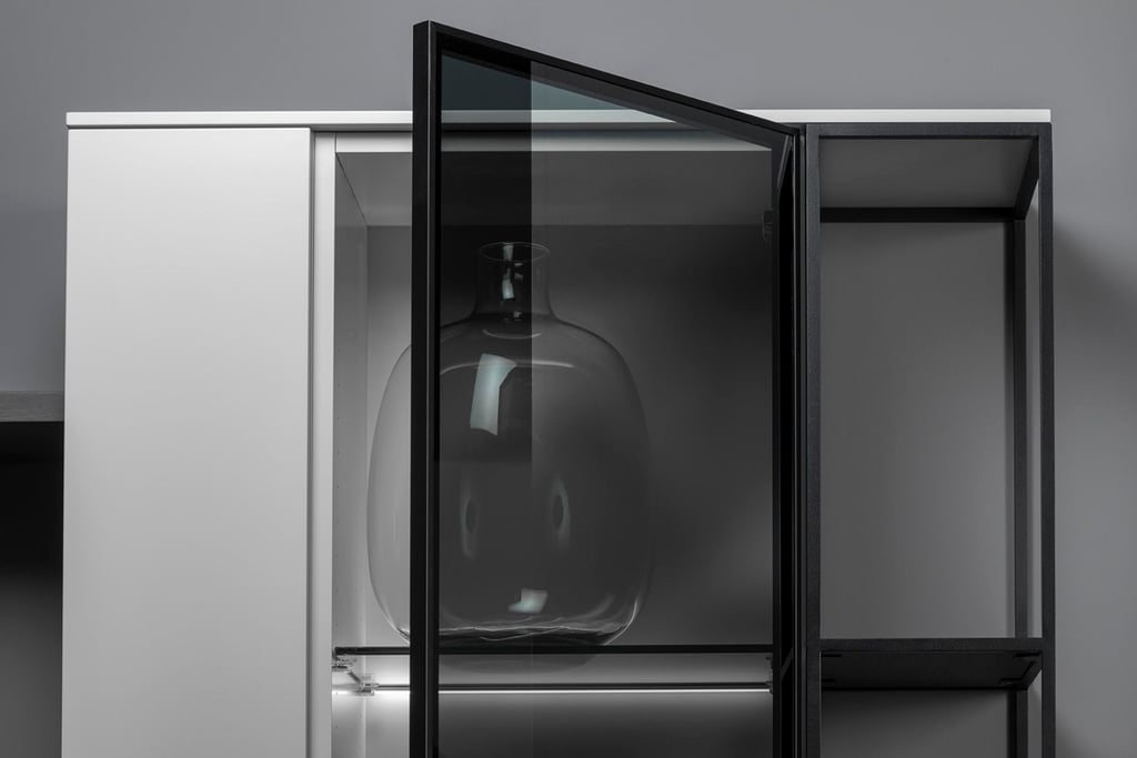Wandkast 218-30 ontwerp je gewoon zelf. Zet uw mooie objecten of verzamelingen in onze nieuwe vitrine kast! Een mooi vormgegeven design kast met deuren van ultra grijs glas (of helder glas), verlicht door middel van een dimbare LED glas schap regelbaar van koel naar warm wit. Kies uit een groot assortiment modules, wandpanelen, kasten en planken. Zo kun je precies de kast samenstellen die perfect aansluit bij jouw wensen en interieur. Kies bijvoorbeeld voor een Opti-Myst openhaard of ga voor de tv-lift waarbij je tv netjes is weggewerkt. Wat je ook kiest, dit wordt het meubel van je dromen!