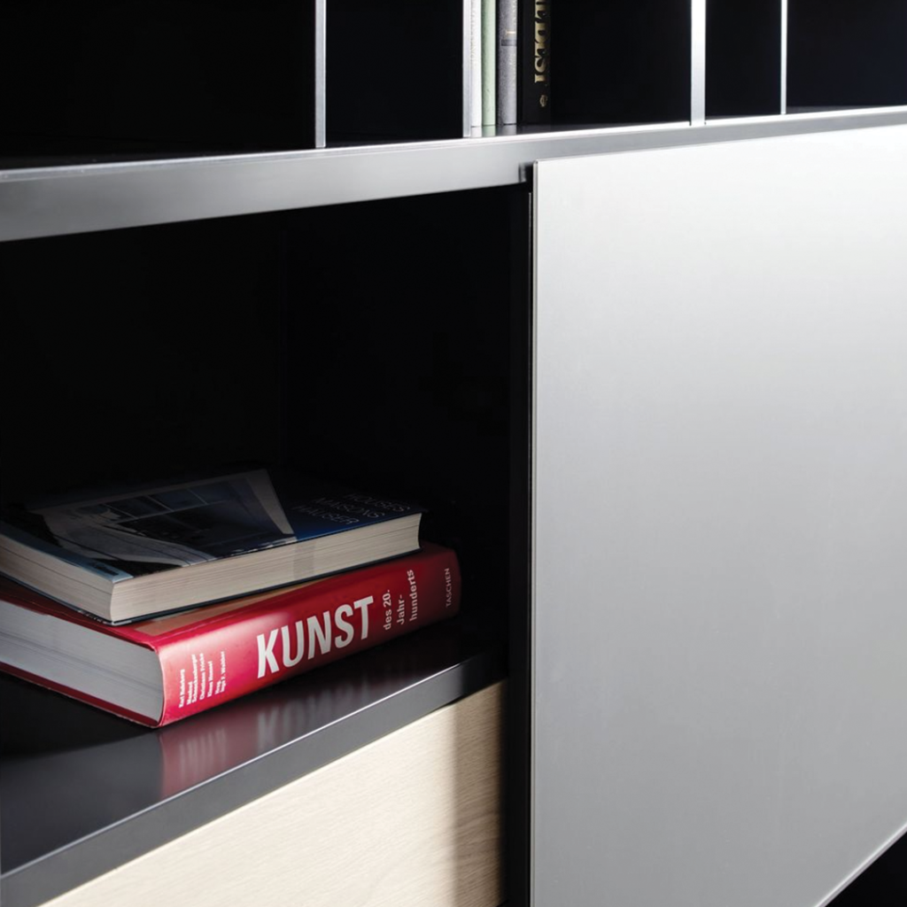 Zoals je mag verwachten van Sudbrock is de SINUS 51 volledig op maat samen te stellen. Kies uit diverse houtfineersoorten, lakkleuren in mat of hoogglans, en bepaal zelf de kleur van het frame en de binnenzijde van de vakken. Ook de afmetingen, indeling en positie van schuifpanelen zijn volledig flexibel.