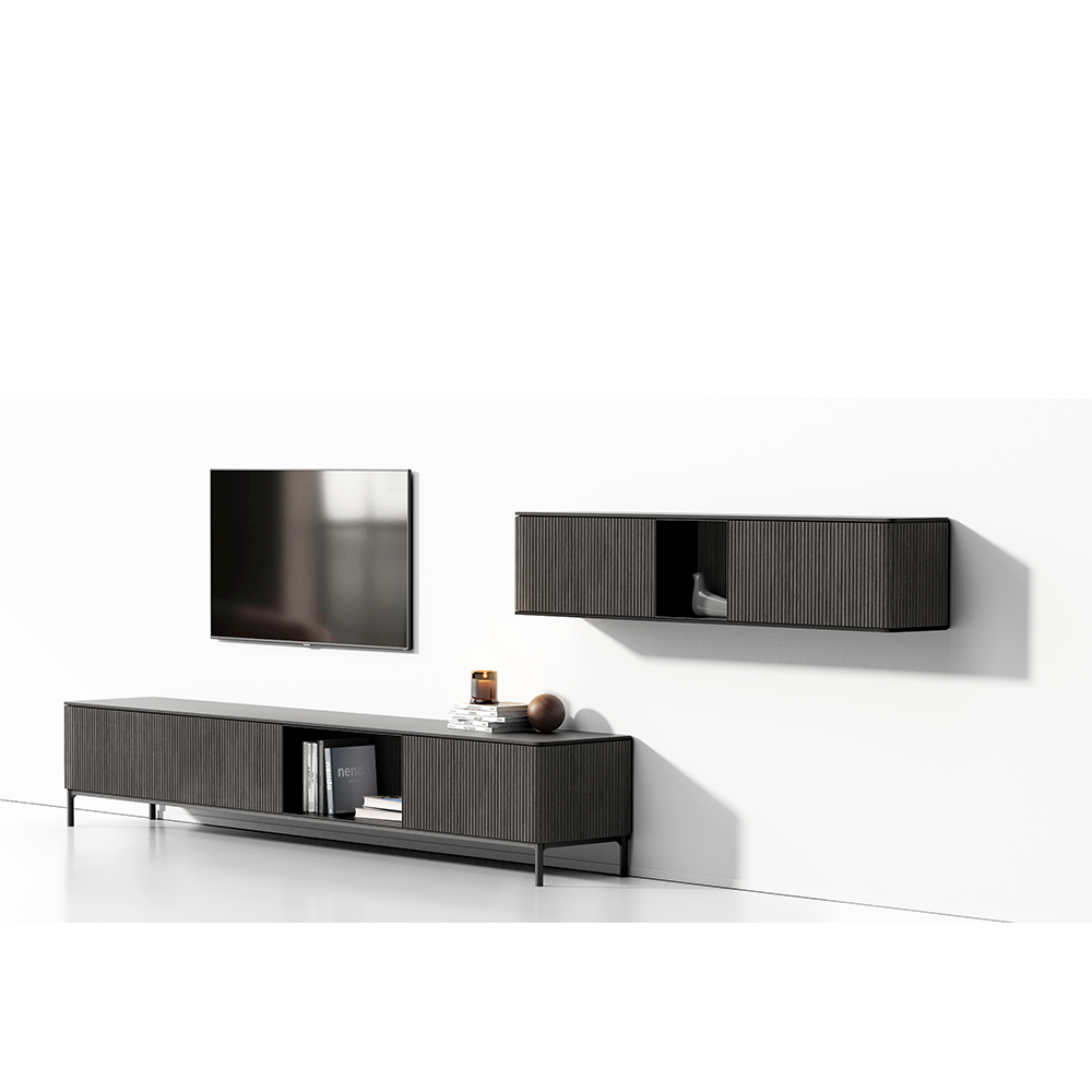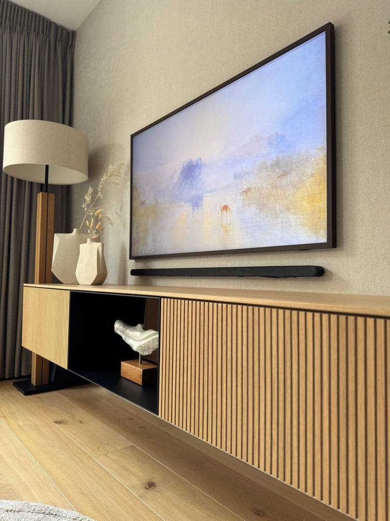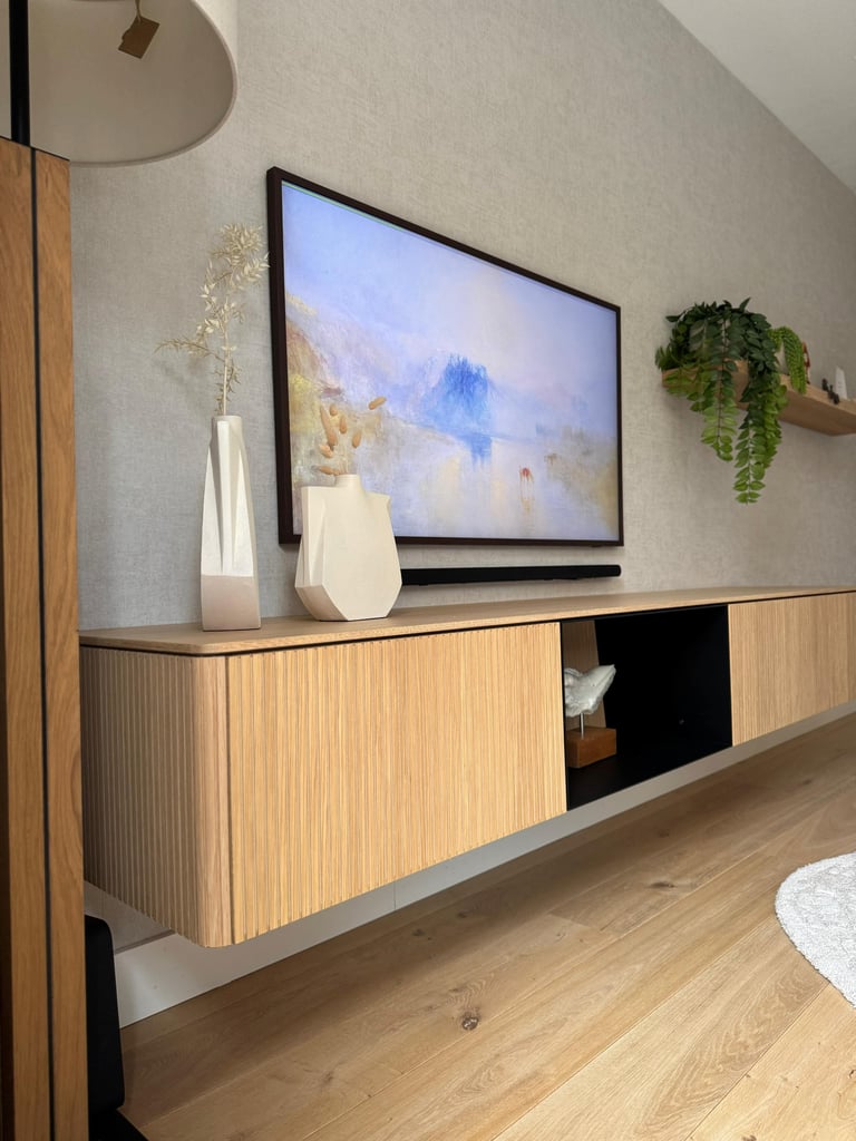 Bij tv meubel Ron draait alles om keuzevrijheid. Je kiest zelf uit een ruim aanbod aan kleuren, houtsoorten en afwerkingen. Ook zijn er diverse functionele en esthetische opties mogelijk, zoals een ingebouwde sfeerhaard, geperforeerde audiofronten voor optimaal geluid of kabeldoorvoeren voor een strak resultaat. Met deze slimme oplossingen maak je van jouw tv-meubel, zwevend of staand, een echte blikvanger én praktische toevoeging aan je woonkamer.