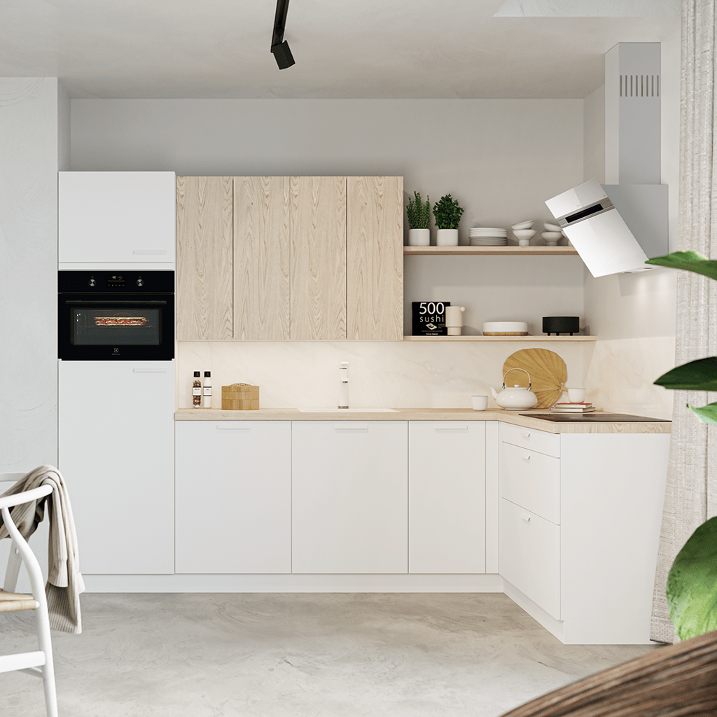 De natuurlijke houttinten van Trent geven de keuken een warme en uitnodigende sfeer, terwijl Nancy’s moderne accenten zorgen voor een strakke en verfijnde uitstraling. Het duurzame, krasbestendige werkblad biedt een solide basis voor dagelijks gebruik en is eenvoudig te onderhouden. Dankzij de slimme opbergoplossingen en ergonomische indeling blijft de keuken overzichtelijk en praktisch in gebruik.