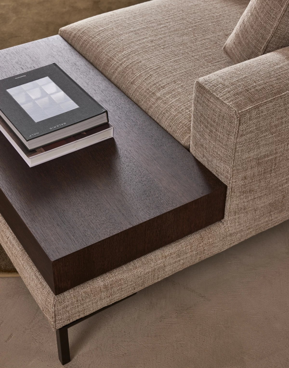 Wil je liever een open zitvlak zonder onderbreking in het midden? Geen probleem. Een tussentafel hoeft namelijk niet tussen twee zitmodules te staan. Ook als zij-element aan je bank is het een stijlvolle en praktische toevoeging.