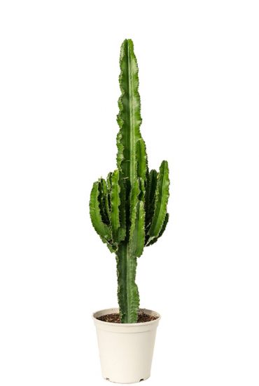 We hebben allemaal plekken in huis waar het iets donkerder is dan voor een raam. Ik zeg bewust voor een raam. Het kan namelijk nog steeds donker zijn naast een raam. Zo kan het voorkomen dat er geen direct zonlicht komt in het midden van een woning. Op deze plekken zijn schaduwplanten erg geschikt. In het rijtje van mijn favorieten komt natuurlijk de Calathea voor. Met zijn prachtige tekeningen op het blad mag deze niet ontbreken op een schaduwrijke plek in huis. Het is een perfecte plant in je interieur die in verschillende soorten verkrijgbaar is. Familie van de welbekende gatenplant is de Philodendron Xanadu. Door zijn langwerpige blad en omdat hij op stam staat, is dit een unieke verschijning. Het is een favoriet bij mij in huis. Op de foto zie je dat deze plant in mijn woonkamer een fijne plek in de schaduw gekregen heeft. Mijn derde favoriete plant in je interieur is een cactus, en dan vooral de grote exemplaren. De Euphorbia Erytrea is er zo’n een en staat prachtig in zowel een modern als landelijk interieur.