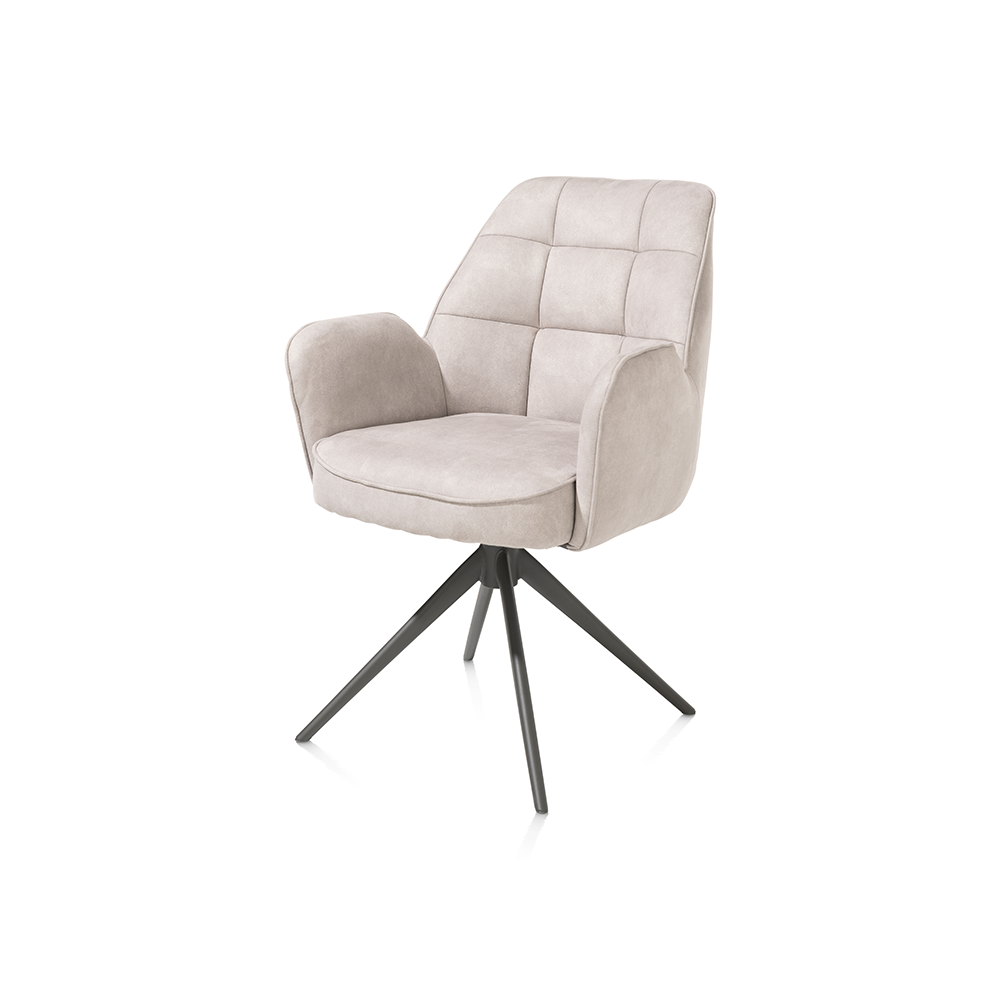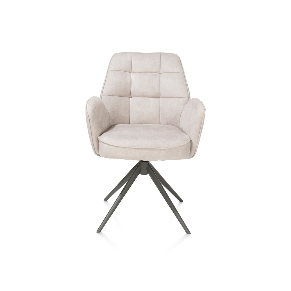 Ontmoet de armstoel Bell: een meesterwerk van modern design en ongeëvenaard comfort. Deze stoel is niet alleen een lust voor het oog, maar biedt ook een sublieme zitervaring dankzij de ingebouwde pocketvering. De unieke ruitvormige inkepingen in de rugleuning geven de stoel een eigentijdse uitstraling die moeiteloos past in elk interieur, van klassiek tot modern. Het frame, uitgevoerd in een verfijnde grafietkleur, is niet alleen stevig maar ook draaibaar, wat extra flexibiliteit biedt. De achterkant van de stoel is elegant bekleed met microvezelstof Calabria, terwijl de voorkant is voorzien van stof Vada voor een luxe uitstraling. De armstoel Bell is verkrijgbaar in een scala aan uitvoeringen, waaronder een variant volledig bekleed in stof Calabria, en komt in drie prachtige kleuren: kiezel (dit model), mosgroen en olijf. Of je nu op zoek bent naar een statement stuk voor je woonkamer, een comfortabele stoel voor de eetkamer, of een chique toevoeging aan je studeerkamer, de armstoel Bell biedt het allemaal. Maak een statement met stijl en comfort – kies voor de armstoel Bell en transformeer je ruimte in een oase van moderniteit en elegantie.