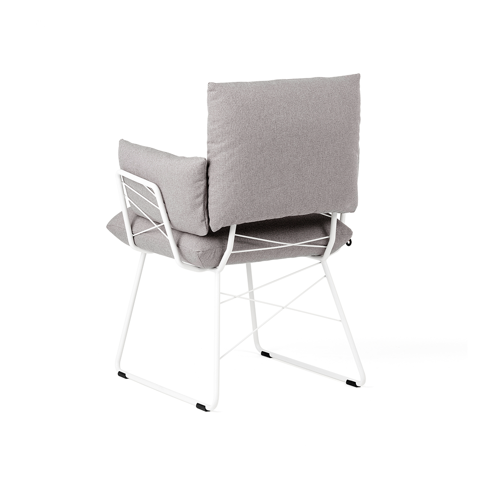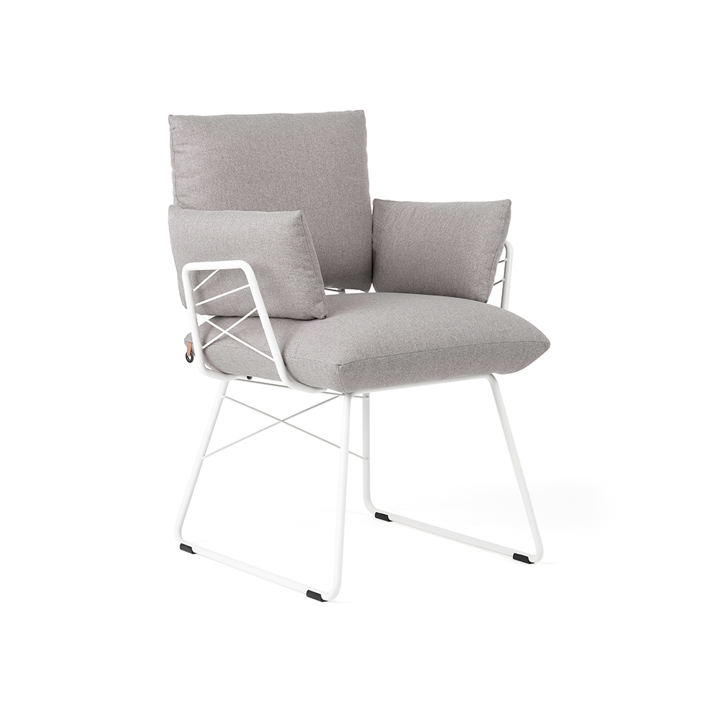 Armstoel Cosy heeft een zachte zitting op een stalen buisstructuur. Dat is het concept van deze stoelen van Mobitec. Door de positie van het rugkussen aan te passen kun je variëren met de look en de zitdiepte van jouw stoel: je kunt deze tegen de rugleuning plaatsen of eromheen schuiven, dankzij de daarvoor bestemde opening.