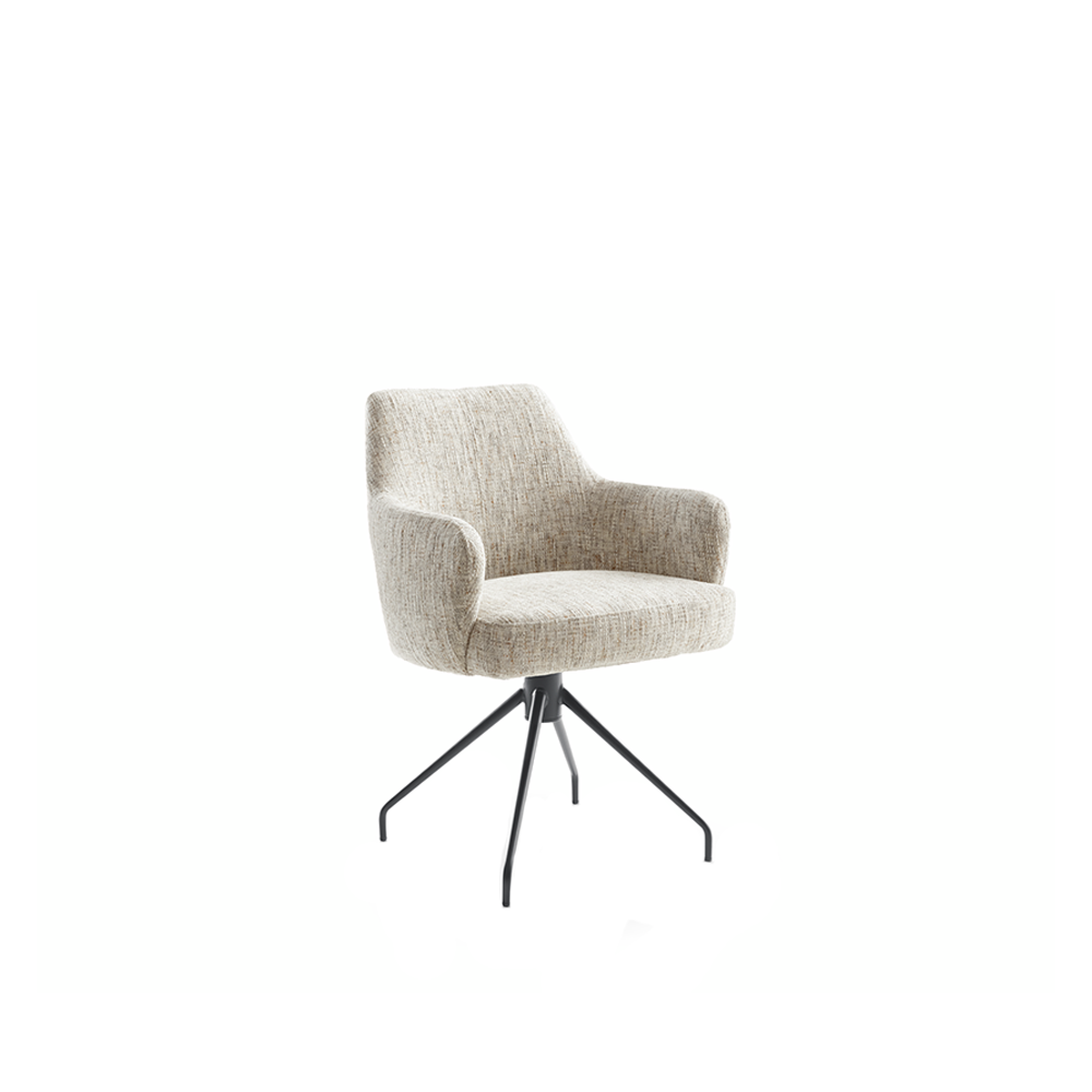 De Granville is niet alleen een lust voor het oog, maar ook een comfortabele zitplek. De zitting is zacht, de armleuningen bieden extra steun en de draaibare voet maakt bewegen makkelijk. Je hebt ruime keuze uit hoogwaardige stoffen en ledersoorten in uiteenlopende kleuren. Zo stel je de stoel volledig samen naar jouw smaak. Of je nu kiest voor een opvallende kleur of een rustige tint: Granville past zich aan jouw woonstijl aan.