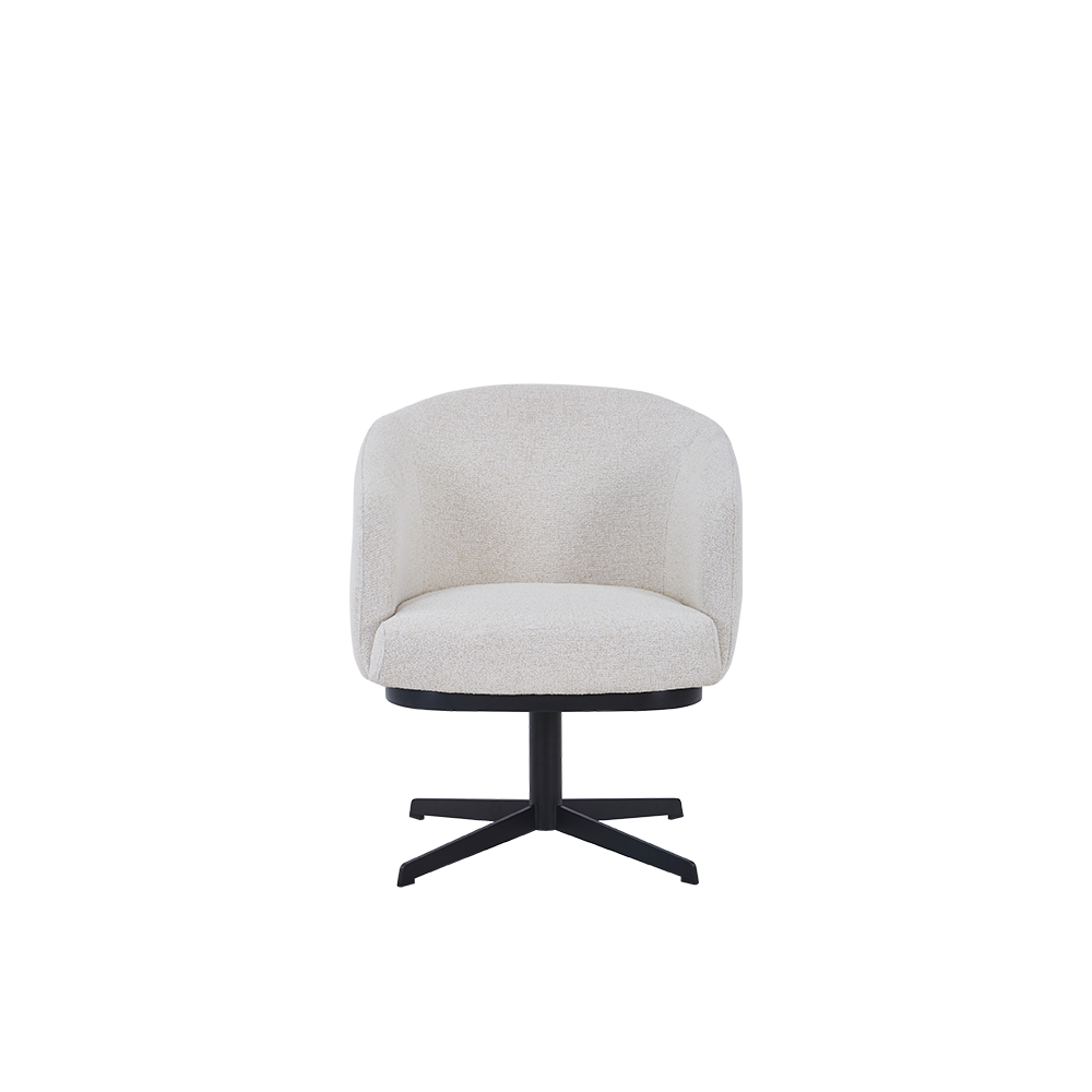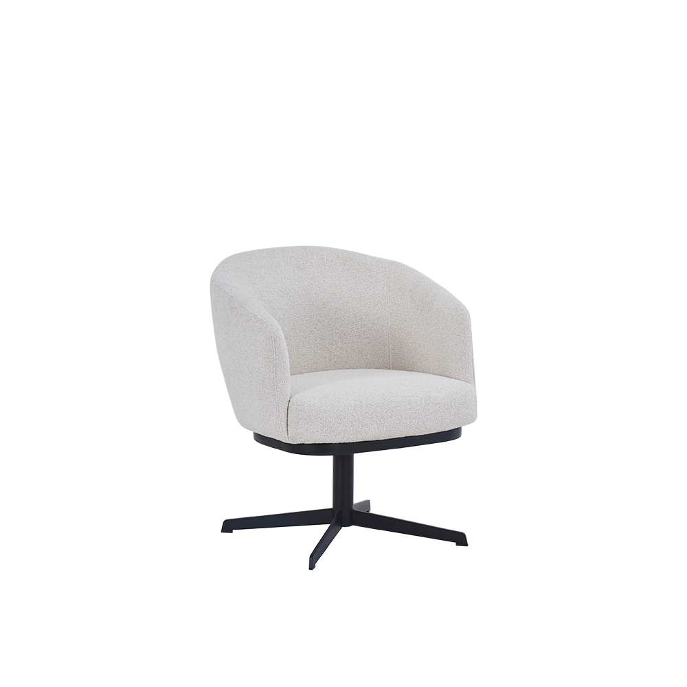 De zachte stoffering in ecru of spring voelt vriendelijk aan en is eenvoudig te combineren met hout, keramiek of natuursteen. De afgeronde kuip ondersteunt rug en armen op een ontspannen manier, ideaal voor lange etentjes of een koffiemoment aan het eiland. Het slanke, zwart metalen frame voegt een grafisch accent toe en geeft stabiliteit zonder zwaar te ogen. De 360 graden draaifunctie verhoogt het gebruiksgemak, zeker in doorloopruimtes of bij een ronde tafel. Kingsford past in veel interieurstijlen, van modern en minimalistisch tot retro of industrieel. Combineer meerdere stoelen in één kleur voor rust of mix ecru en spring voor een levendiger ritme rond de tafel.