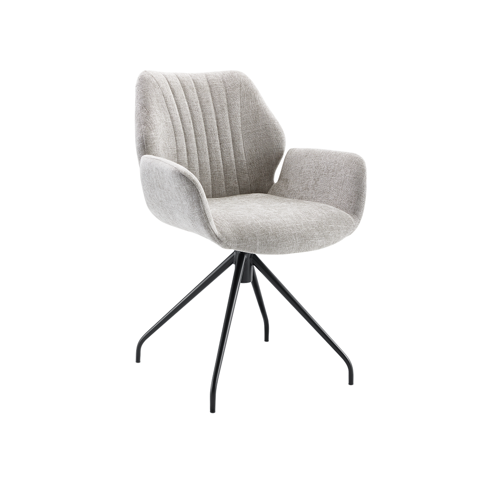 Armstoel Masanta lichtgrijs heeft een leuke retro look en is uitgevoerd in een zachte weefstof. Op de voorkant van de rugleuning is een verticaal sierstiksel aangebracht. Samen met de opvallende rondlopende kuipzitting maakt de Masanta een echte eyecatcher in jouw interieur! Het handige terugdraaimechanisme zorgt ervoor dat je makkelijk plaatsneemt in je stoel en weer opstaat, ook als de ruimte bij de eettafel beperkt is.