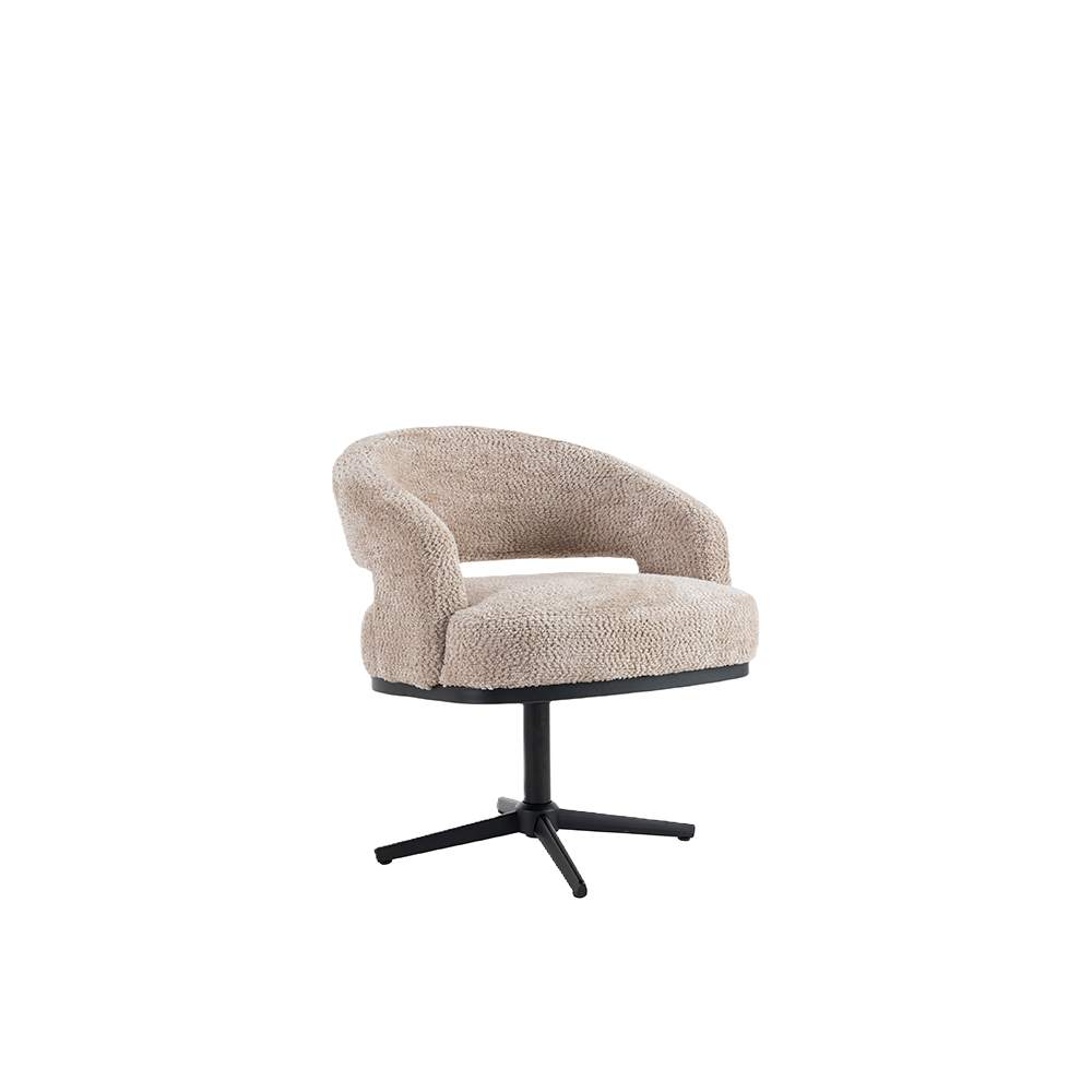 Armstoel Noalia beige van INHOUSE brengt comfort en rust samen in een eigentijds ontwerp. De lijnen zijn vriendelijk en rond, de zitting voelt uitnodigend aan en de ondersteuning is aangenaam voor langere zitmomenten. Dankzij het draaimechanisme beweeg je soepel weg van de tafel en schuif je net zo gemakkelijk weer aan. Dat maakt Noalia ideaal voor tafelen, thuiswerken of een snelle koffie. De zachte bekleding geeft de stoel een warme uitstraling die moeiteloos past in verschillende interieurs. Noalia oogt verfijnd zonder op te vallen en heeft precies die rustige elegantie die je zoekt wanneer looks en levensgemak in balans moeten zijn.