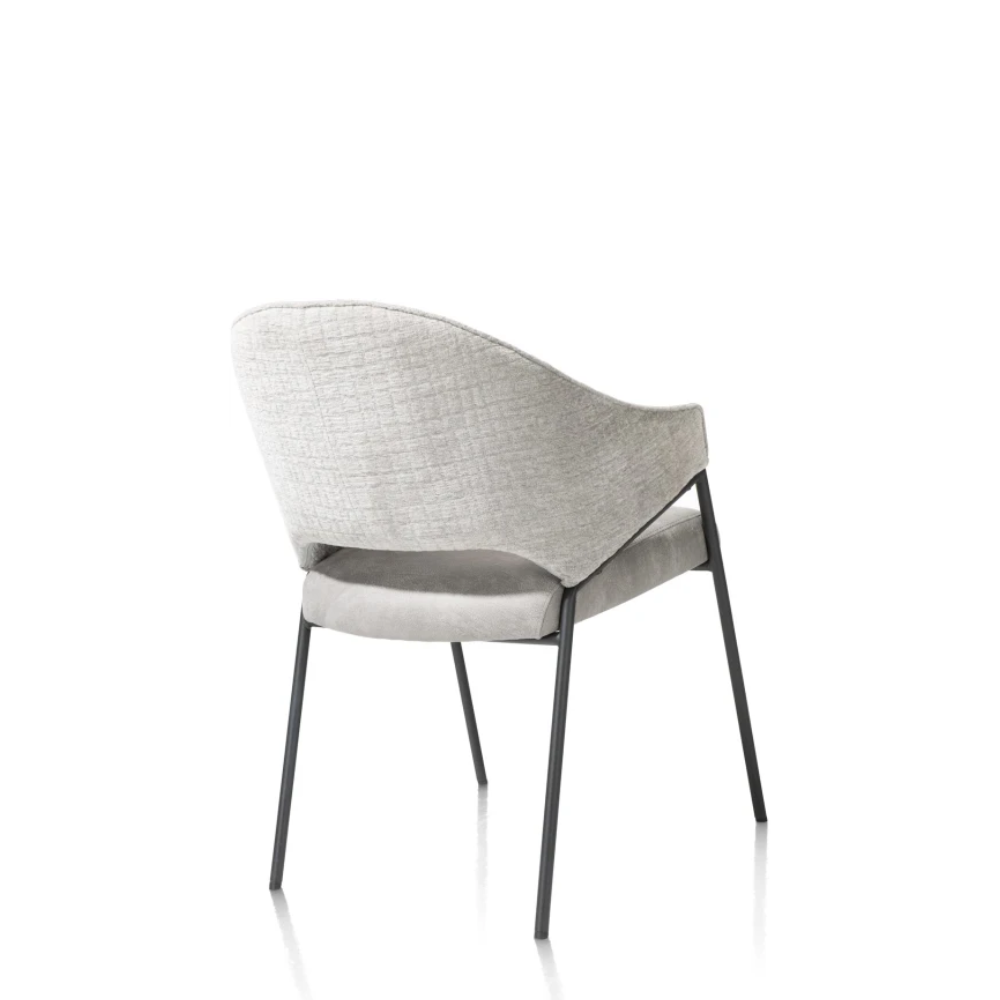 Armstoel Nolan grijs geeft je eethoek een lichte, elegante uitstraling. De combinatie van de luchtige crèmekleur met het zwarte metalen onderstel zorgt voor een modern contrast dat meteen opvalt, zonder druk te worden. De armleuningen nodigen uit om relaxed aan tafel te zitten, of je nu uitgebreid dineert, een kop koffie drinkt of aan de eettafel werkt. Dankzij de royale zitting en afgeronde vormen oogt Nolan vriendelijk en zacht, maar toch strak genoeg voor een eigentijds interieur.