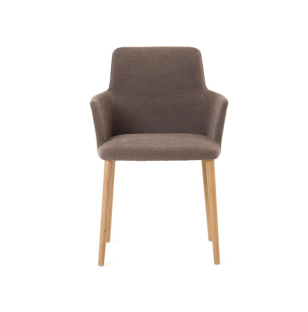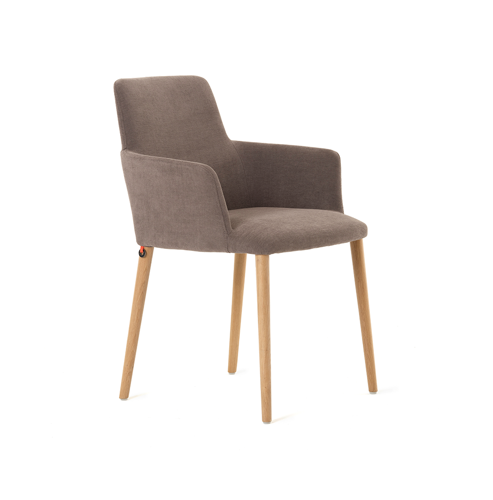 • eetstoel rob in bruine stof met eikenhouten poten van mobitec
