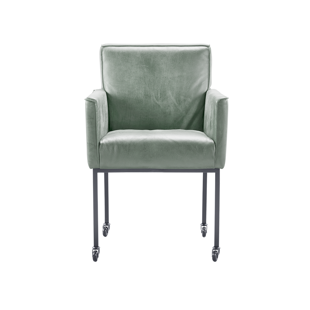 Armstoel Rona een industriële en stoere eetkamerstoel. De stoel is leverbaar in geschuurd leder en heeft een metalen onderstel, maar je kan ook kiezen voor een stoffen bekleding. Bovendien is Rona een comfortabel stoel die ideaal is voor eindeloos tafelen met vrienden en familie. De stoel heeft namelijk een hoge rug en diepe zitting, waardoor hij ontzettend lekker zit. Bij de Rona eetkamerstoel kan je ook kiezen voor de Rona eetbank. Deze twee zijn leuk om te combineren, bijvoorbeeld rondom een van onze industriële eettafels.