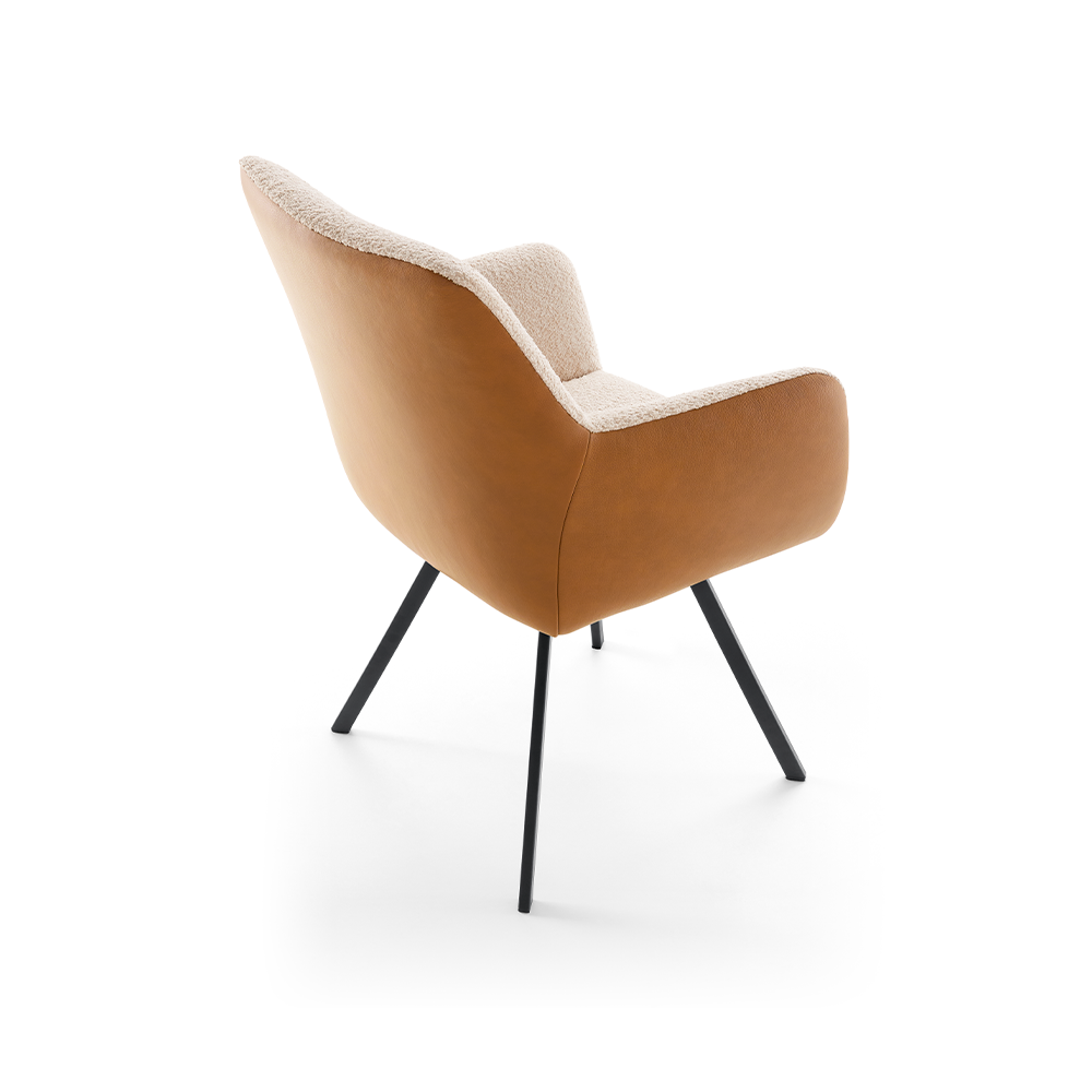 Het sierlijke design van armstoel Via Del Corso 91 biedt niet alleen comfort, maar ook opvallende details. De rug en zitting zijn voorzien van een nosag vering met daarop een vormschuim, wat zorgt voor jarenlang genieten van deze veelzijdige armstoel. Als je het moeilijk vindt om te kiezen tussen verschillende stof- of ledersoorten, bieden wij de oplossing met combistoffering. De buitenzijde van de armstoel kan in een andere kleur of bekleding worden uitgevoerd dan de binnenzijde, waardoor je kunt spelen met ton-sur-ton harmonieën of gedurfde contrasten.