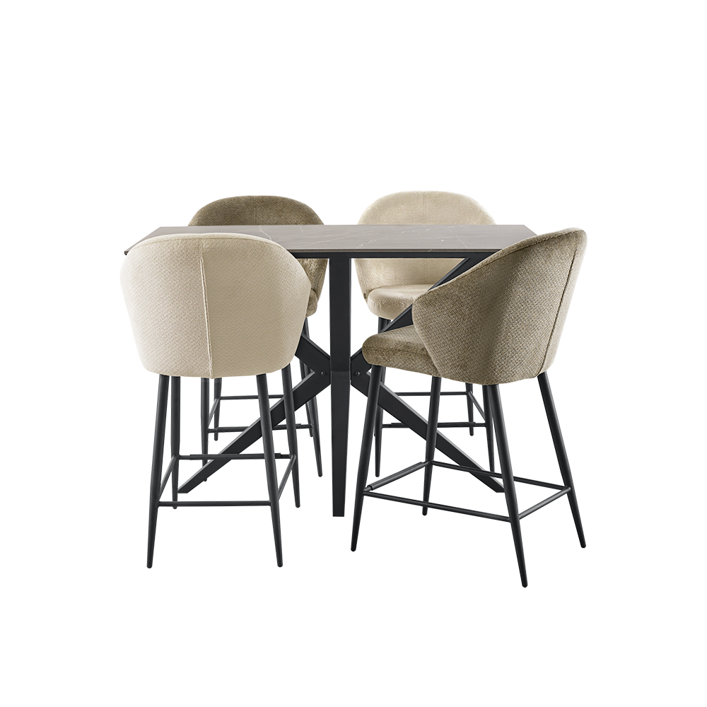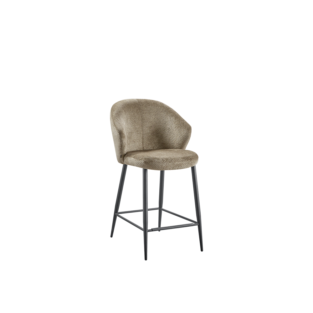 De bekleding in taupe is een toegankelijke basis voor een natuurlijk kleurpalet Kies je voor de beige variant, dan creëer je een extra frisse look. Het zwart metalen frame geeft contrast en stabiliteit. De lijnen zijn rank gehouden voor een ruimtelijk effect, zonder in te leveren op comfort. Alfita nodigt uit tot lang natafelen, ontbijt aan het eiland of een snelle espresso tussendoor. Stof en metaal laten zich eenvoudig combineren met andere materialen in huis, waardoor de kruk zowel in Scandinavische en Japandi interieurs als in moderne en industriële settings tot zijn recht komt. Met een set van twee, drie of zelfs vier creëer je een rustige, ritmische lijn langs het blad. Zo oogt de keuken, of de eethoek meteen georganiseerd en stijlvol.