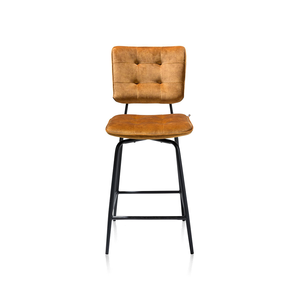Daarnaast heeft barkruk Manou een mooie off black metalen onderstel. Ook de gecapitonneerde zitting en rugleuning vallen op en geven de barstoel net wat meer allure. De stoel heeft ook een frame wat doorloopt over de achterzijde. Hierdoor heb je meteen een praktische greep om de stoel vast te pakken, zonder dat je aan de stof komt.