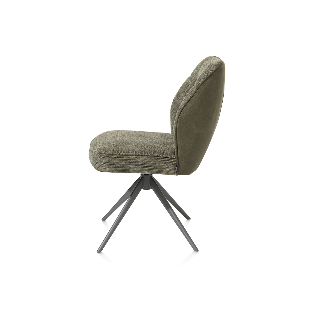 De eetkamerstoel Bell van Henders & Hazel is een samenspel van een modern design en ongeëvenaarde comfort. Deze stoel is niet alleen een lust voor het oog, maar biedt ook een sublieme zitervaring dankzij de ingebouwde pocketvering. De unieke ruitvormige inkepingen in de rugleuning geven de stoel een eigentijdse uitstraling die moeiteloos past in elk interieur, van klassiek tot modern. Het frame, uitgevoerd in een verfijnde grafietkleur, is niet alleen stevig maar ook draaibaar, wat extra flexibiliteit biedt. De achterkant van de stoel is elegant bekleed met microvezelstof Calabria, terwijl de voorkant is voorzien van stof Vada voor een luxe uitstraling. De eetkamerstoel Bell is verkrijgbaar in een scala aan uitvoeringen, waaronder een variant volledig bekleed in stof Calabria, en komt in drie prachtige kleuren: kiezel, mosgroen (dit model) en olijf. Of je nu op zoek bent naar een statement stuk voor je woonkamer, een comfortabele stoel voor de eetkamer, of een chique toevoeging aan je studeerkamer, de eetkamerstoel Bell biedt het allemaal. Maak een statement met stijl en comfort – kies voor de eetkamerstoel Bell en transformeer je ruimte in een oase van moderniteit en elegantie.