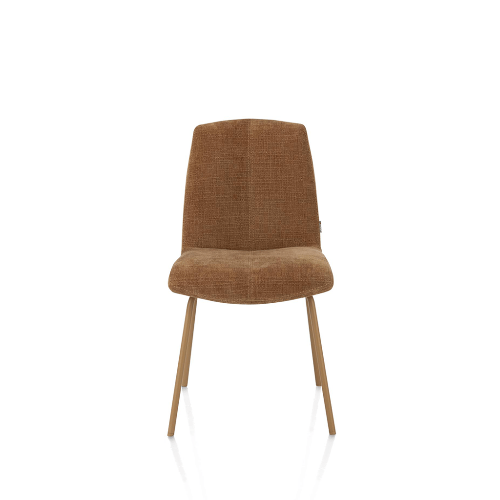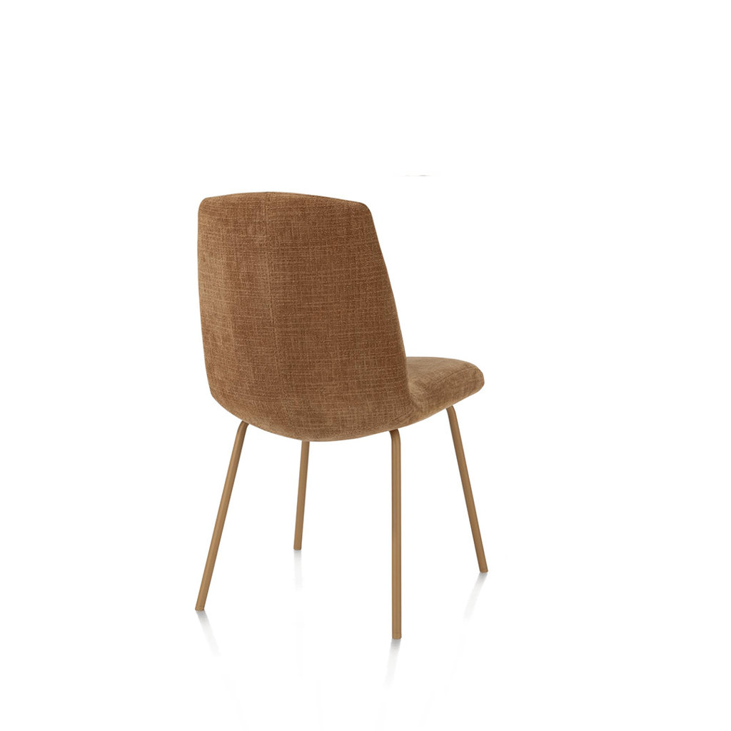 Filipo is verkrijgbaar in verschillende kleuren (koper, crème, olijf) en texturen binnen de Cadiz-stoflijn, zodat je de stoel kunt afstemmen op jouw smaak en interieur. Het metalen frame is op subtiele wijze afgestemd (tone-in-tone) om een harmonieus geheel te vormen.