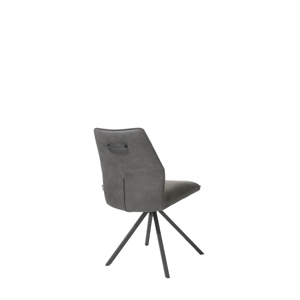 De eetkamerstoel Franky Off Black combineert robuuste elegantie met ultiem zitcomfort. Het onderstel van zwart metaal zorgt voor een industriële uitstraling en geeft de stoel een stabiele basis. De bekleding in Taurus microleder – een combinatie van 60% polyester en 40% gerecycled leder voelt zacht aan en is tegelijk bijzonder sterk. Dit microleder heeft een unieke look en de voordelen van zowel leer als microvezelstof. De stoel is voorzien van een handgreep aan de rugleuning, waarmee je hem moeiteloos kunt verplaatsen of aanschuiven.