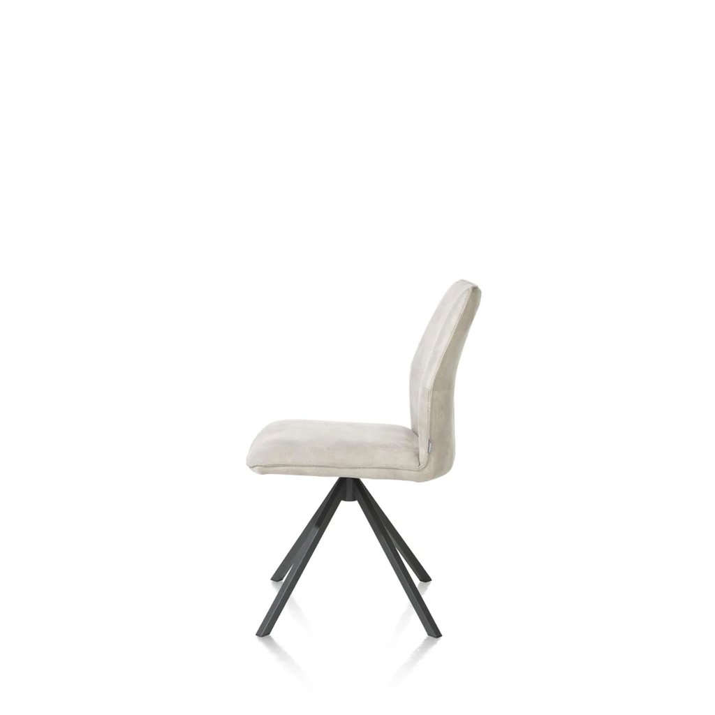 Wat de Eetkamerstoel Franky Peddle echt bijzonder maakt, is de bekleding in zogenaamd Taurus microleder: een duurzame en comfortabele stof die bestaat uit 60% polyester en 40% gerecycled leder. Dit slimme materiaal combineert de natuurlijke uitstraling en luxe van leer met de gebruiksvriendelijke eigenschappen van microvezel. Het resultaat? Een stof die zacht aanvoelt, lang mooi blijft en tegen een stootje kan. De subtiele nerfstructuur geeft de stoel bovendien een levendige, karaktervolle uitstraling. En dankzij de praktische handgreep aan de achterzijde van de rugleuning verplaats je de stoel eenvoudig – ideaal bij het aanschuiven of schoonmaken.